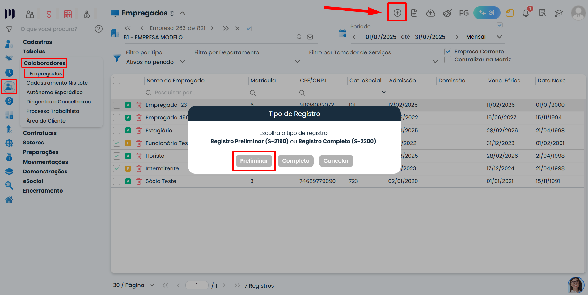 A empresa terá até o dia 7 do mês seguinte para completar os dados e enviar o evento S-2200 (registro definitivo).