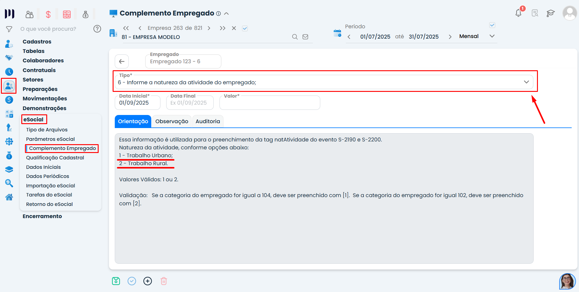 Passo 7: Vá até Pessoal> eSocial > Complemento Empregado;