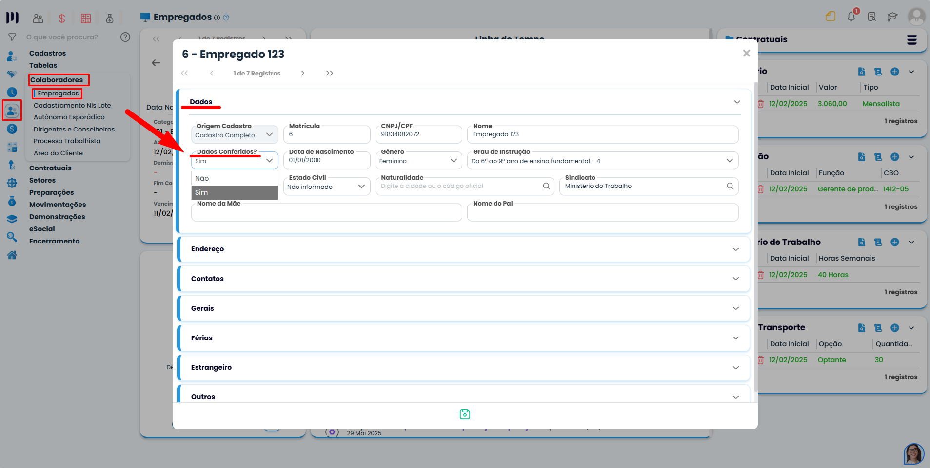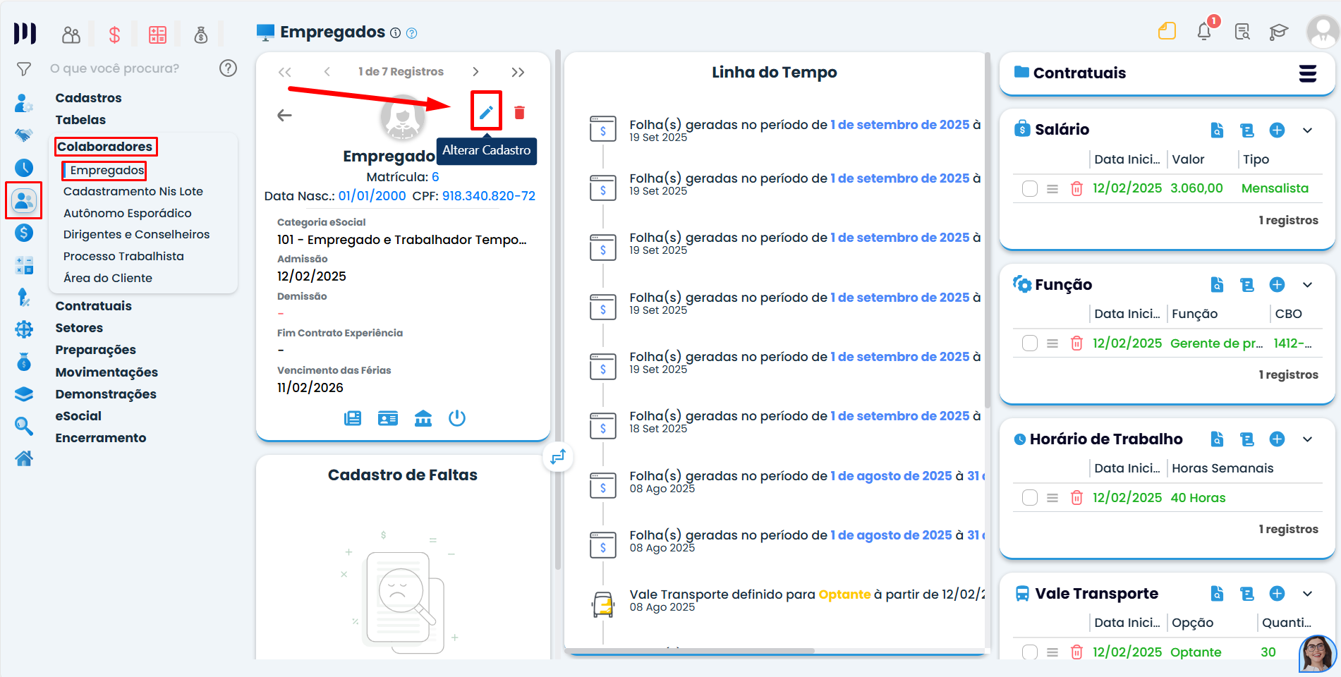 Passo 2: Localize o colaborador com registro preliminar e entre no cadastro;