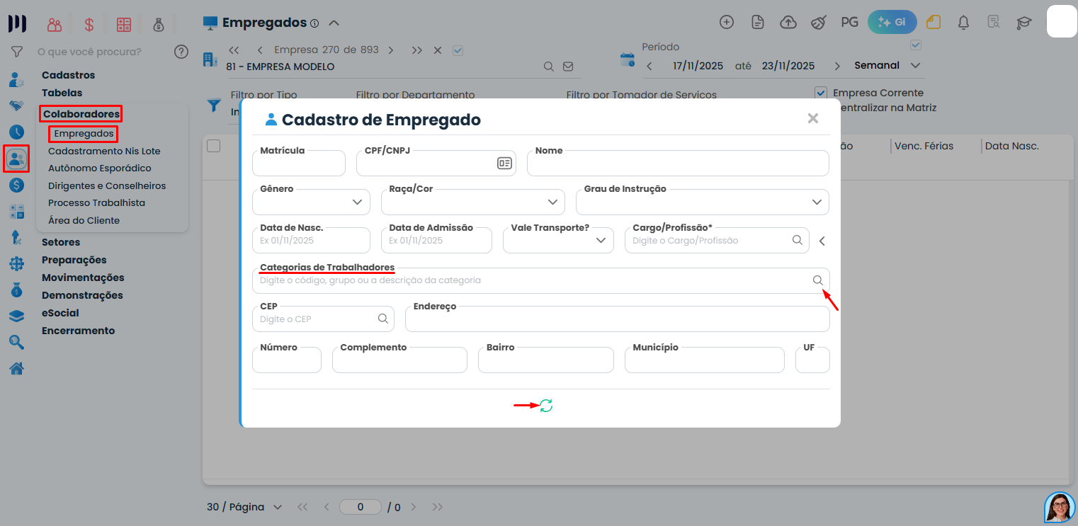 Passo a passo para cadastrar autônomo na aba empregados:
