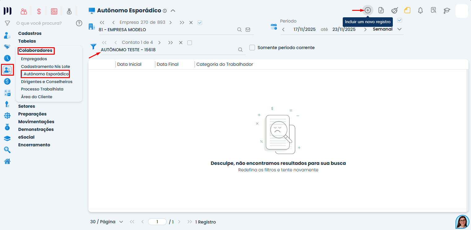 Dica: Se o autônomo já estiver cadastrado como empregado, não é necessário cadastrá-lo novamente nesta aba de esporádicos.