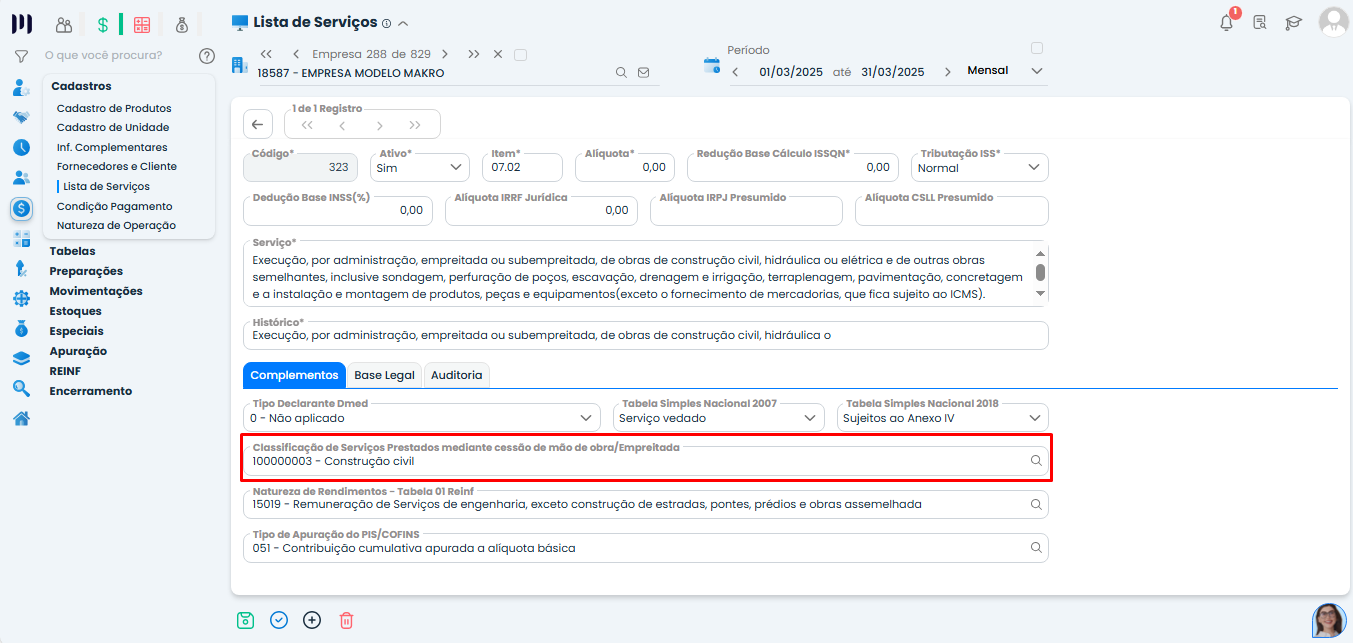 “Classificação de Serviços Prestados mediante cessão de mão de obra/Empreitada”