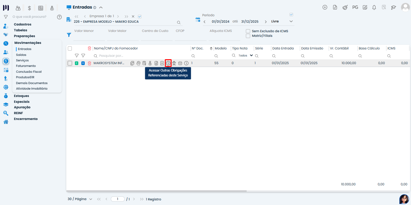 Clique no ícone “Outras Obrigações Referenciadas deste Serviço” ( símbolo “i”)