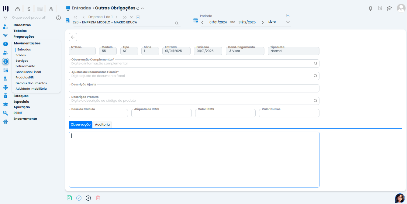 Descrição Ajuste: Detalhe a natureza do ajuste