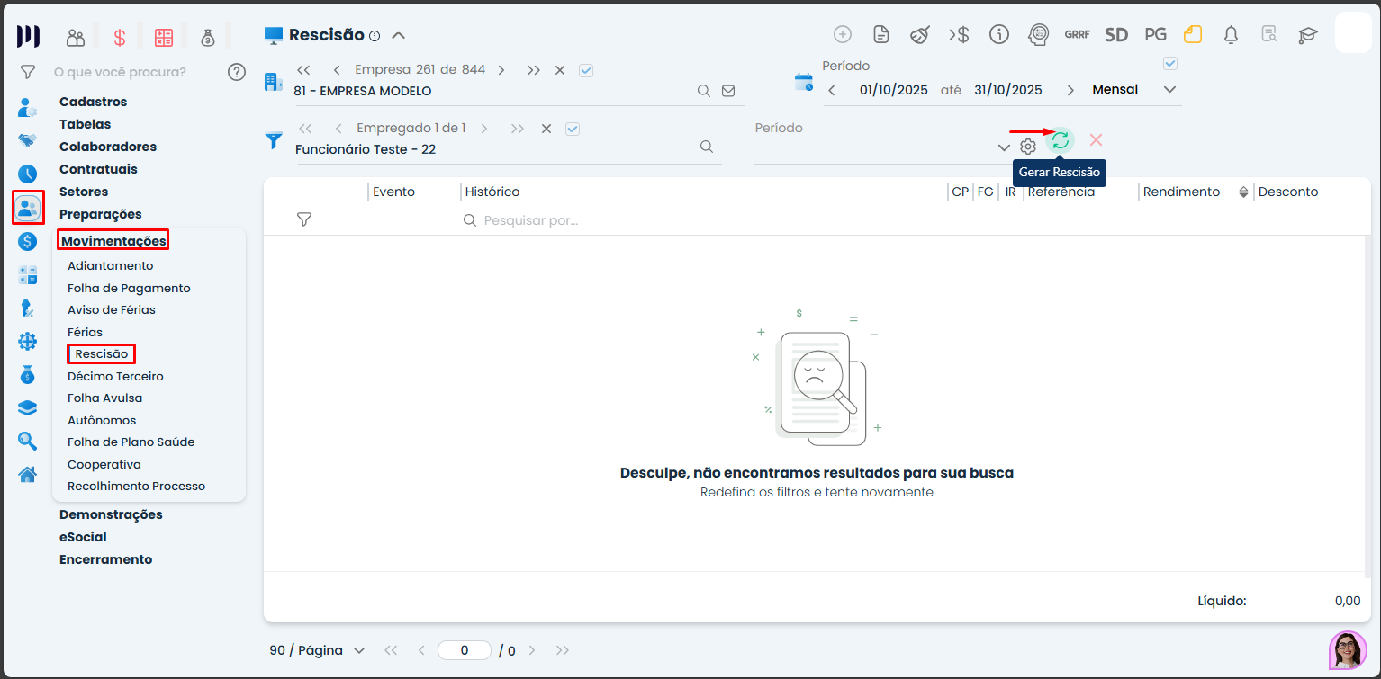 • Clique no ícone ‘Gerar rescisão’: