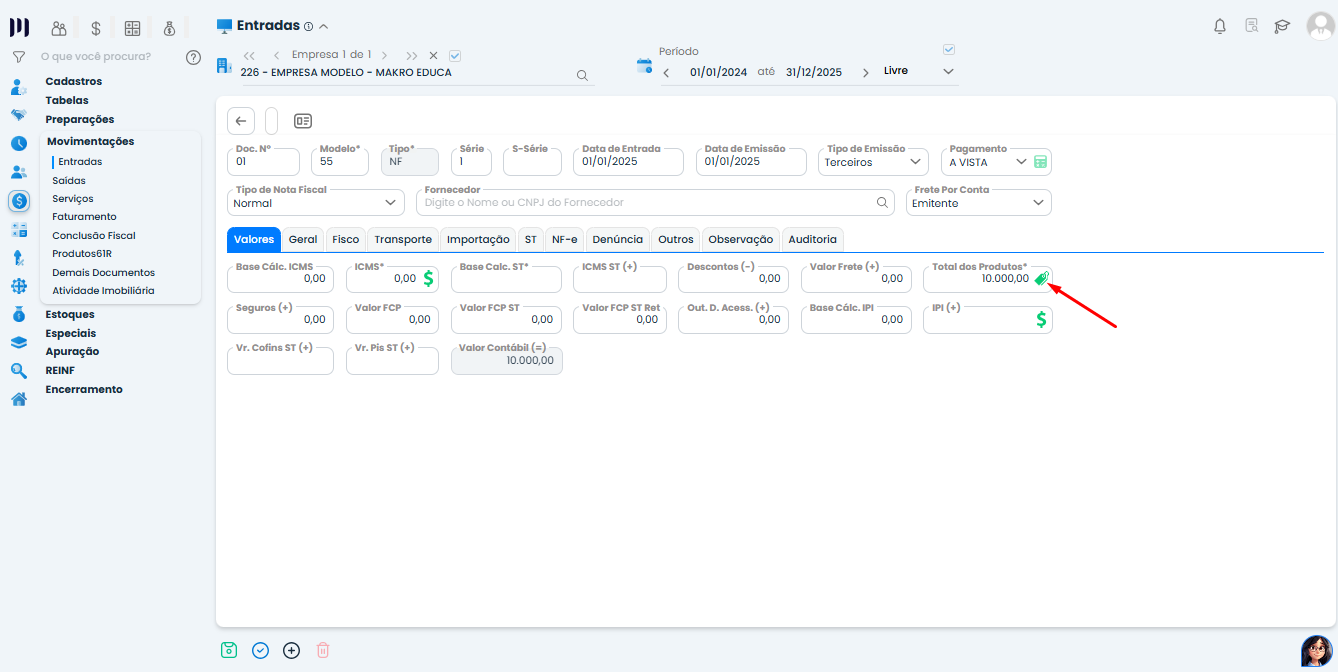 Abra o documento fiscal que precisa de ajuste