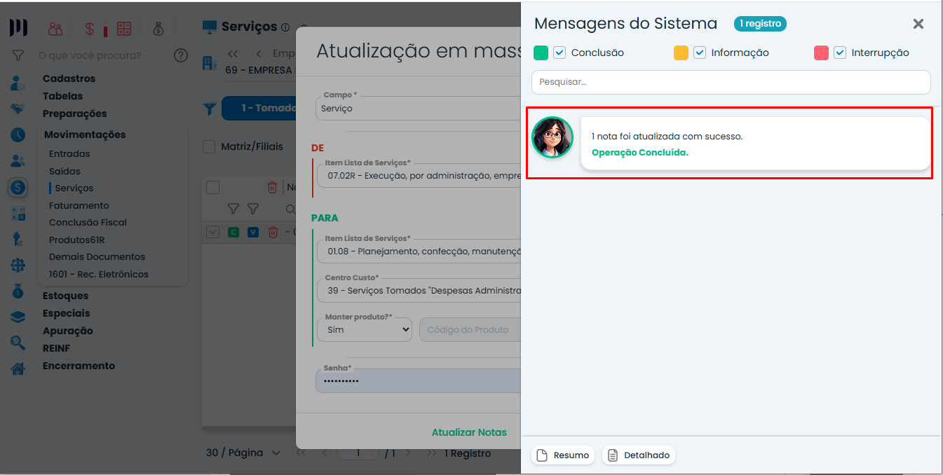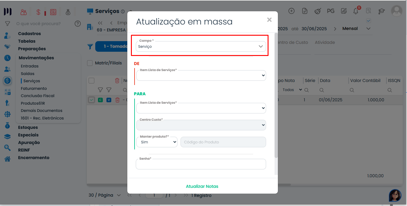 Atualização em Massa de Serviço em Notas Fiscais no Módulo de Serviços