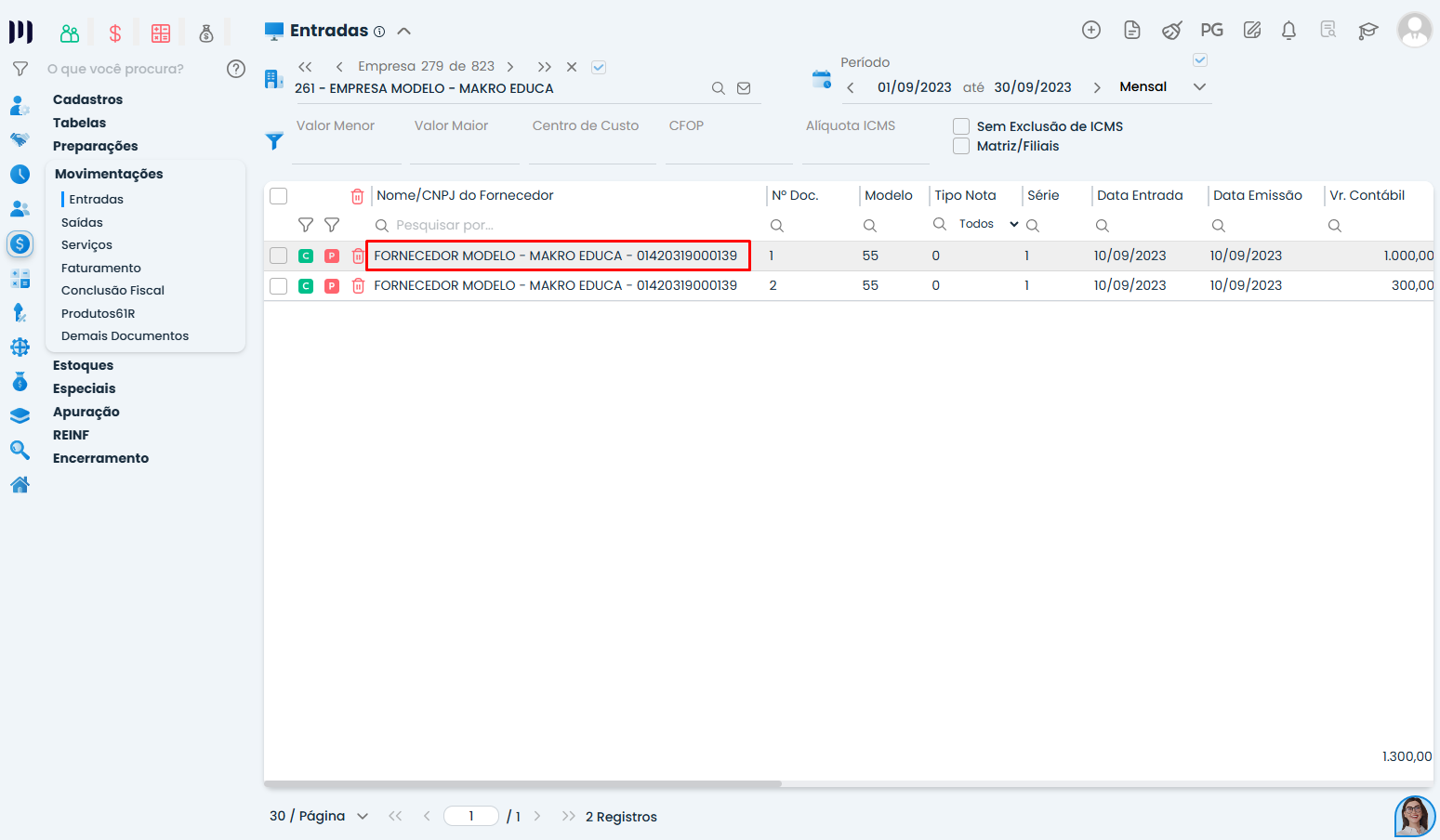 2. Localize e clique sobre o nome do fornecedor para abrir o cadastro da nota
