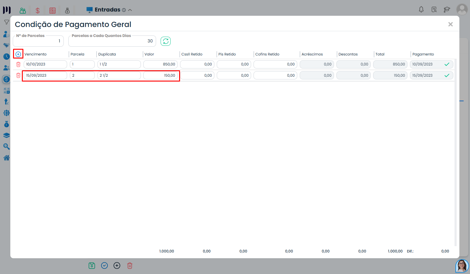 Uma nova parcela com valor da devolução (ex: R$ 150,00)