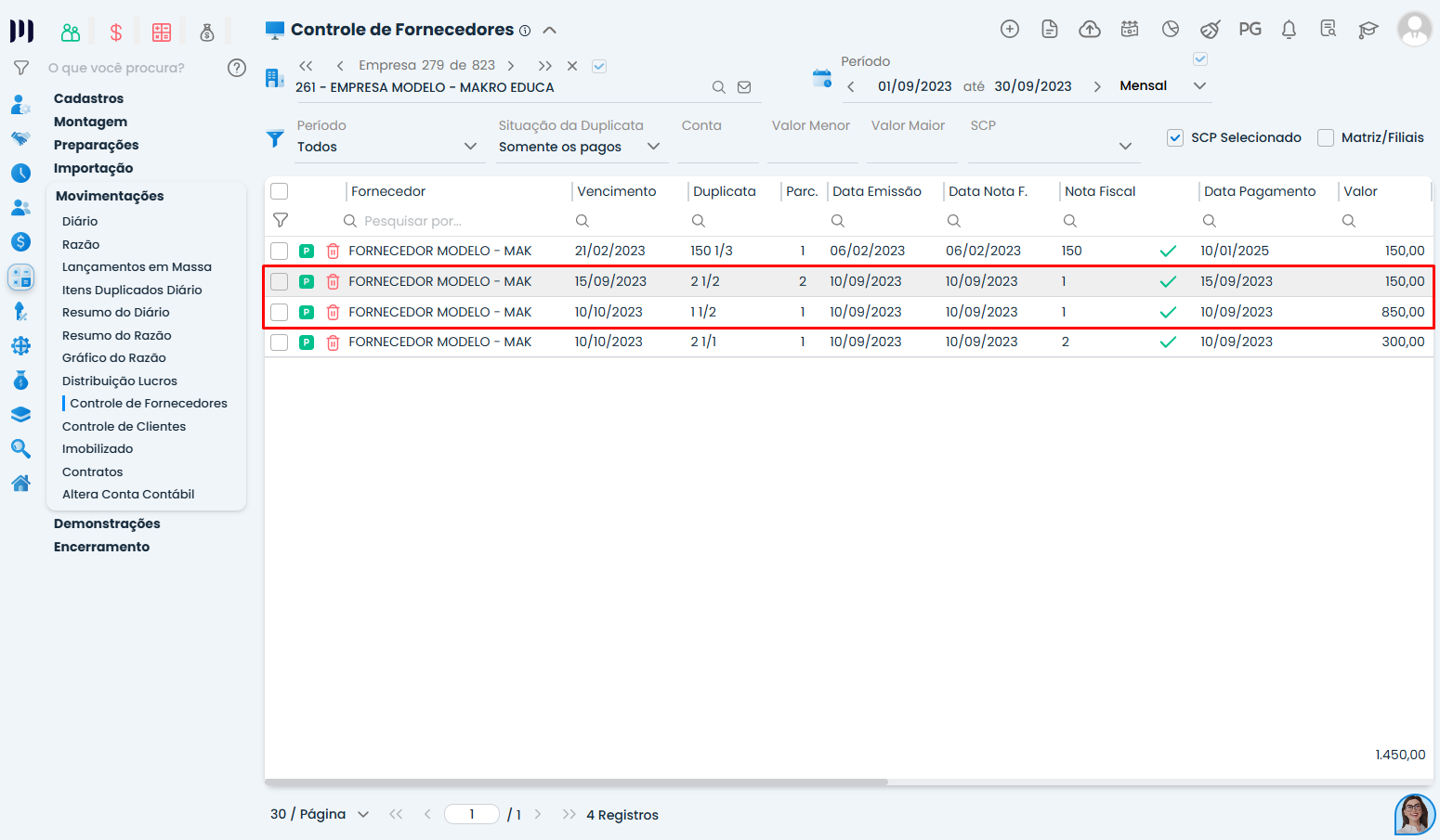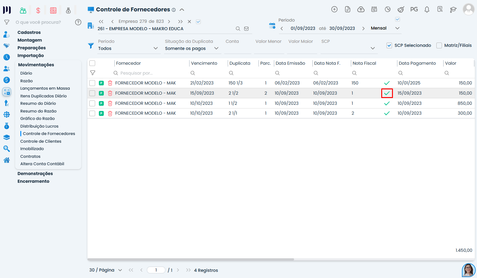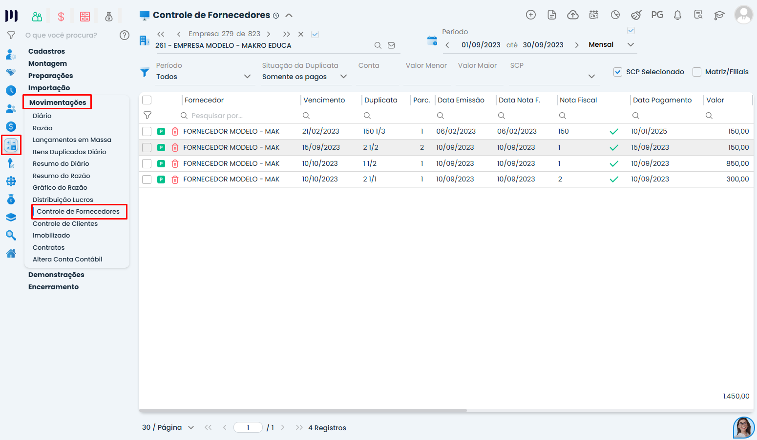 5. Acesse Contábil > Movimentações > Controle de Fornecedores