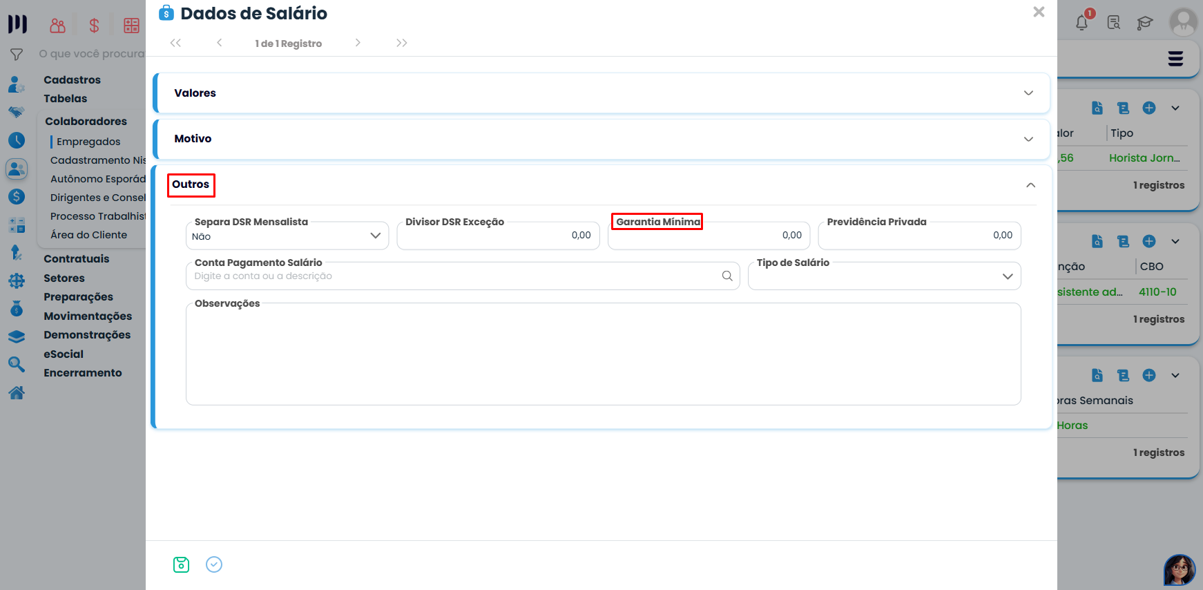 Na aba “Outros”, coloque o valor da garantia mínima que o funcionário deve receber.