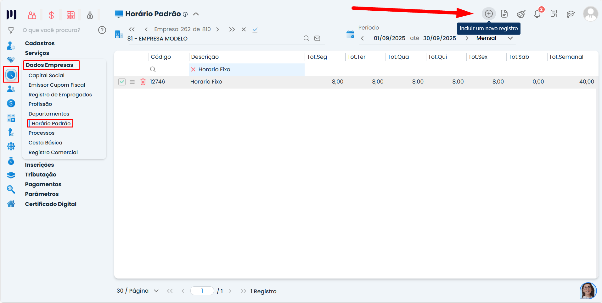 Vamos resolver isso juntos! Para facilitar o preenchimento das informações no cadastro dos funcionários, você pode criar um horário padrão com os dados já configurados. Isso economiza tempo e garante consistência nos lançamentos.