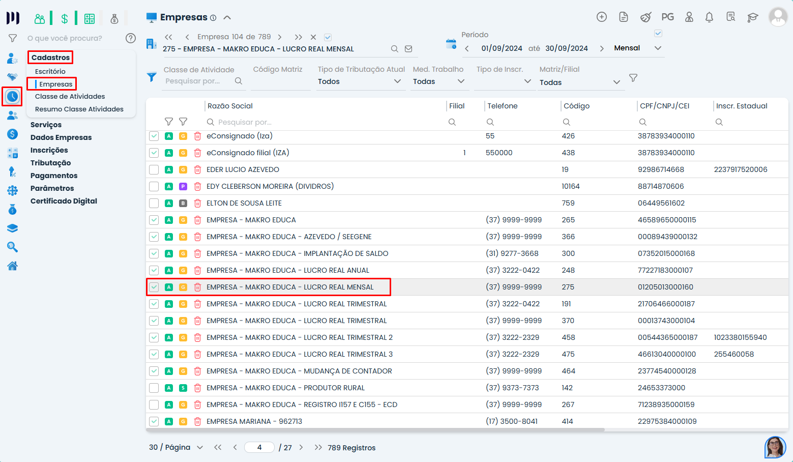 • No menu principal, vá para Preparar > Cadastros > Empresa.