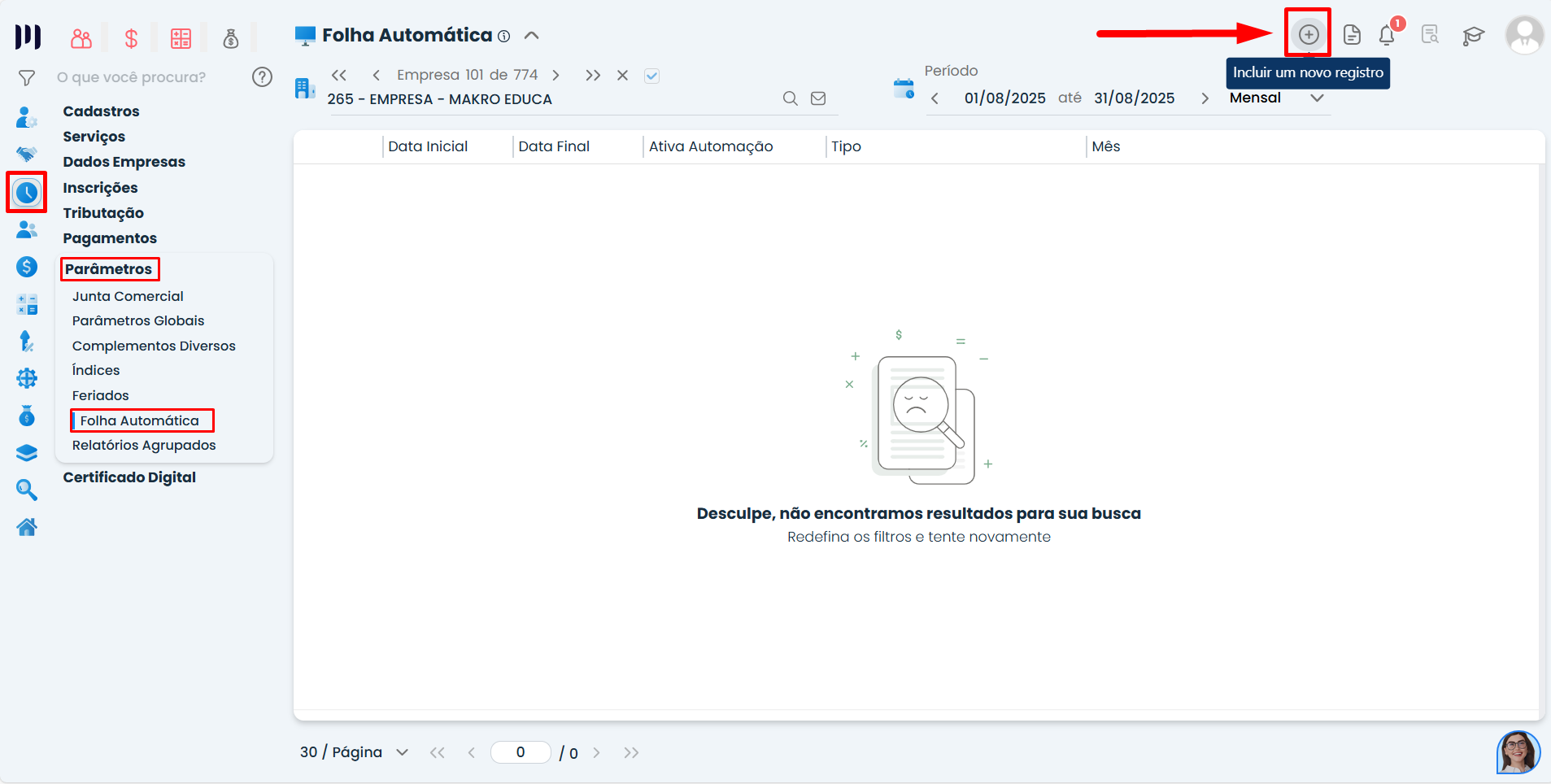 Para cadastrar a automação da Folha Automática, para geração da folha de pagamento automaticamente pelo sistema, siga as orientações abaixo: