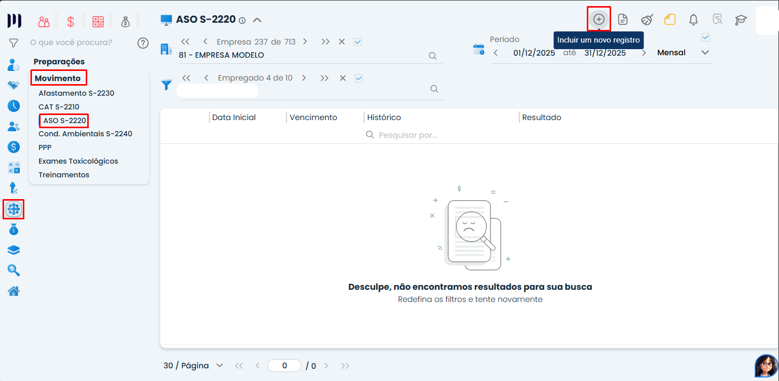 Cadastro do Atestado de Saúde Ocupacional (ASO) no sistema e envio do evento S-2220 para o eSocial