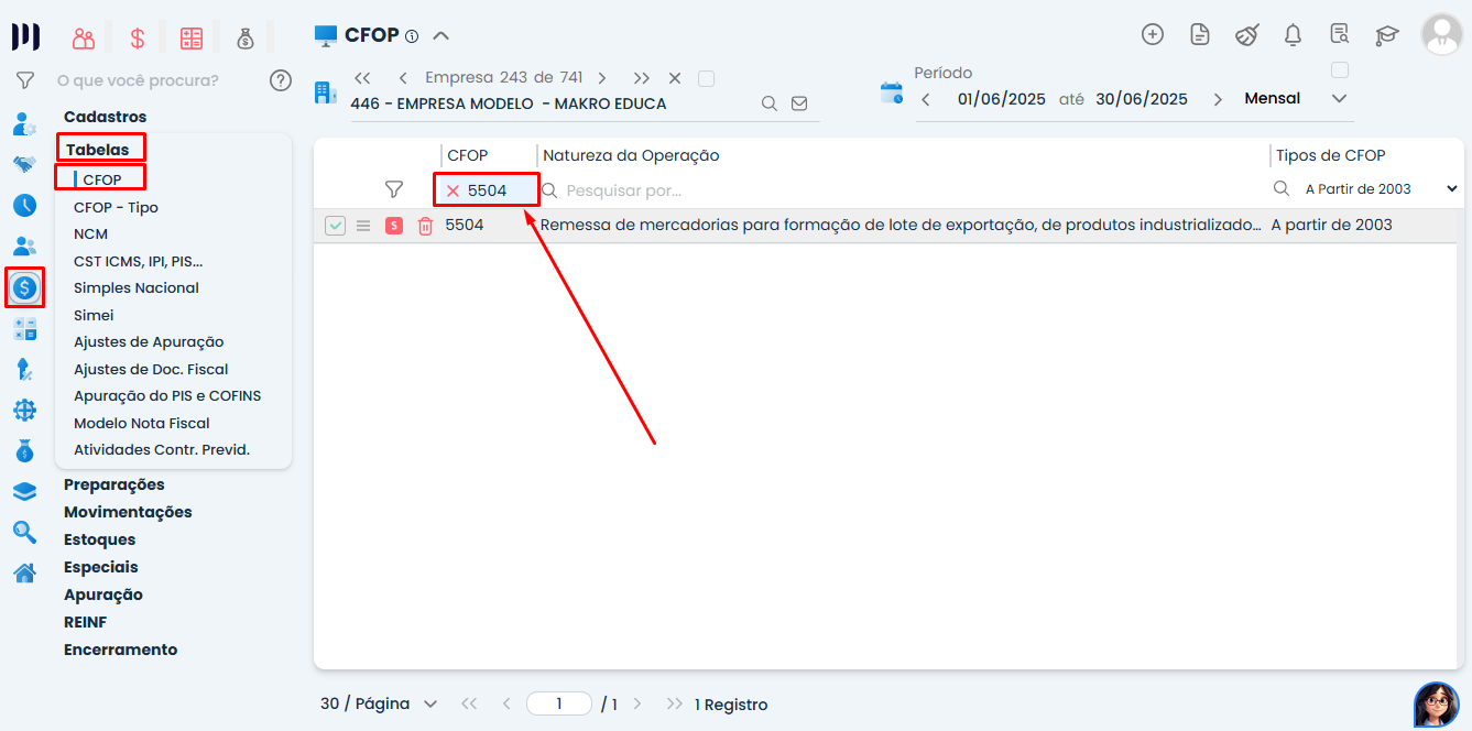 Acessar: Fiscal > Tabelas > CFOP > Pesquisar pelo CFOP que consta na Nota Fiscal