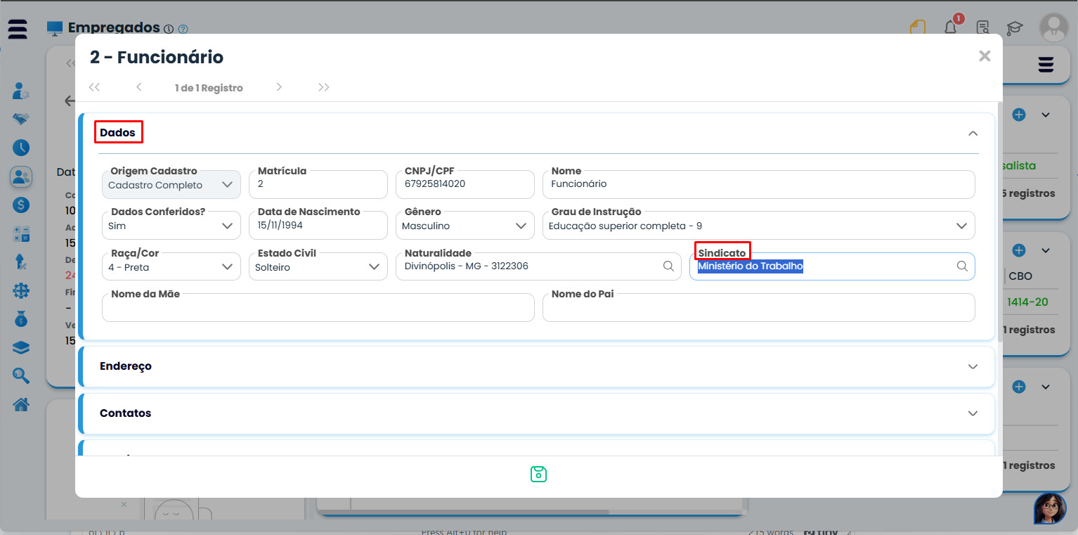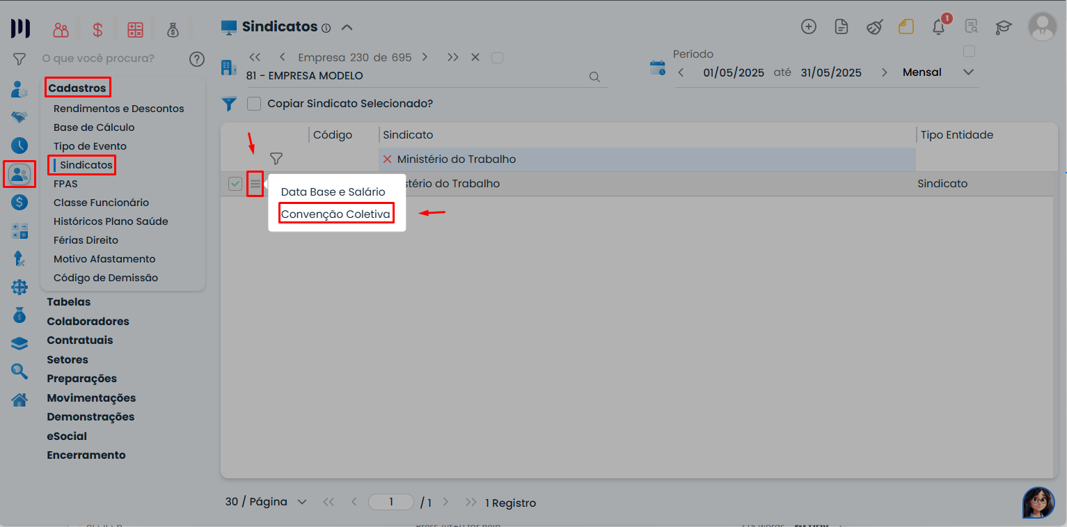 Antes de cadastrar a convenção, é essencial verificar qual sindicato está vinculado ao empregado.