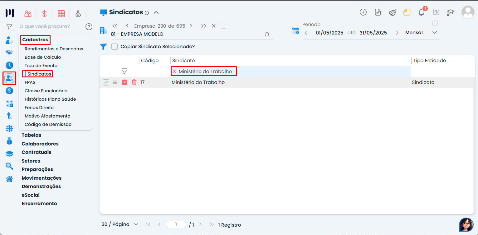 Passo 2: Acesse o cadastro de sindicatos