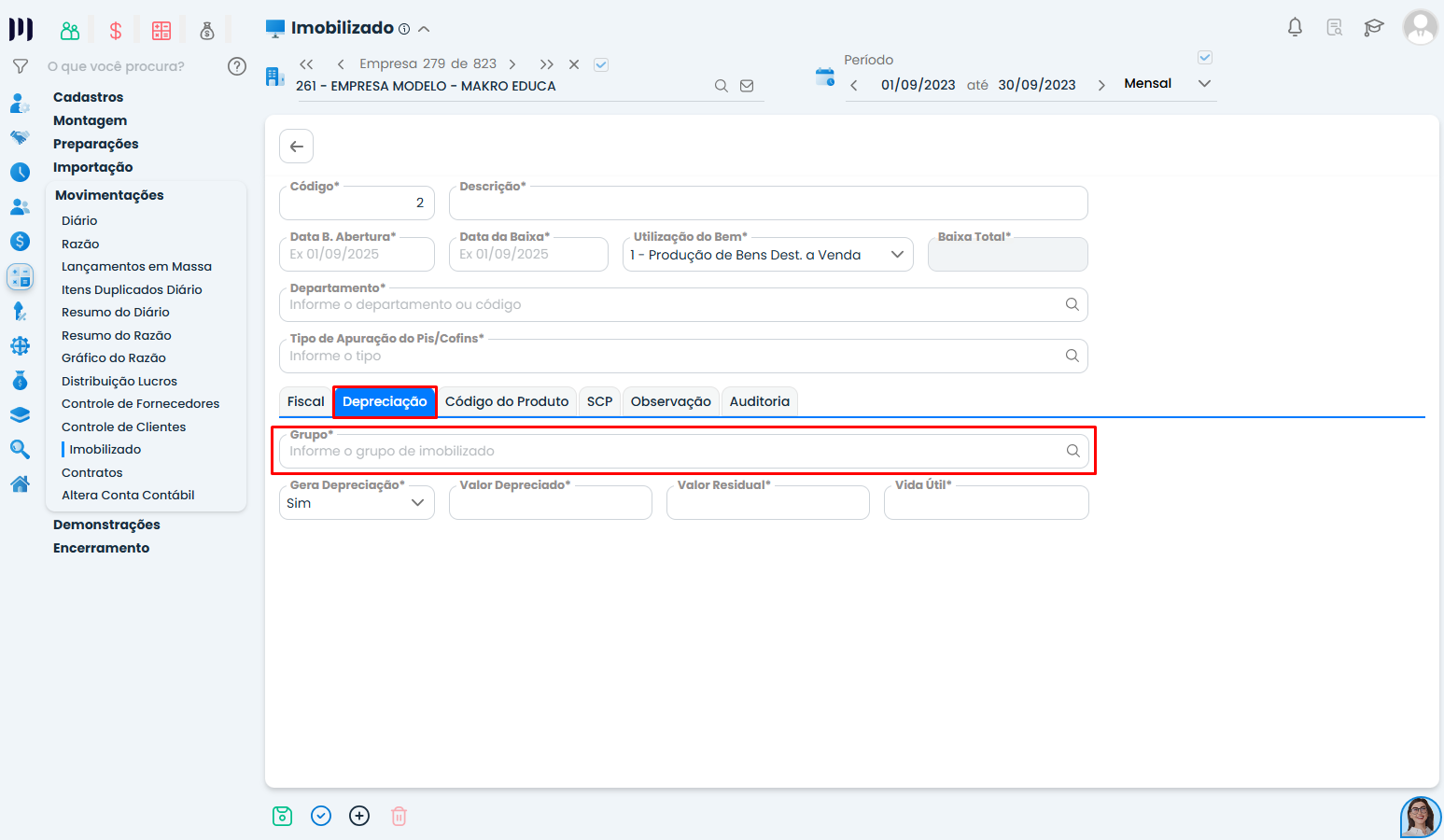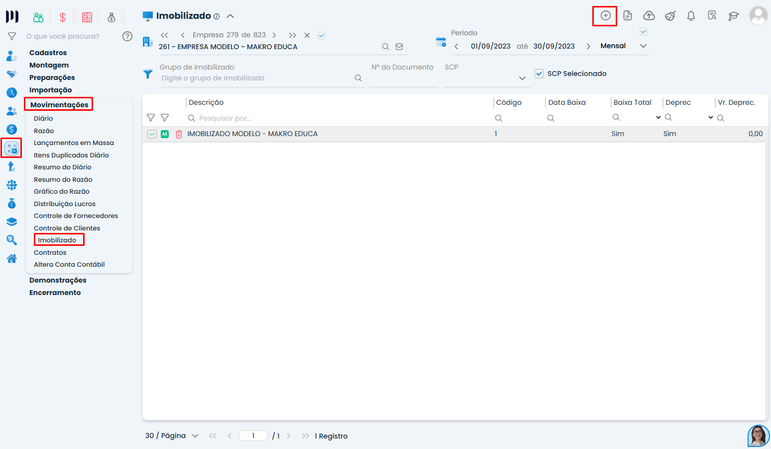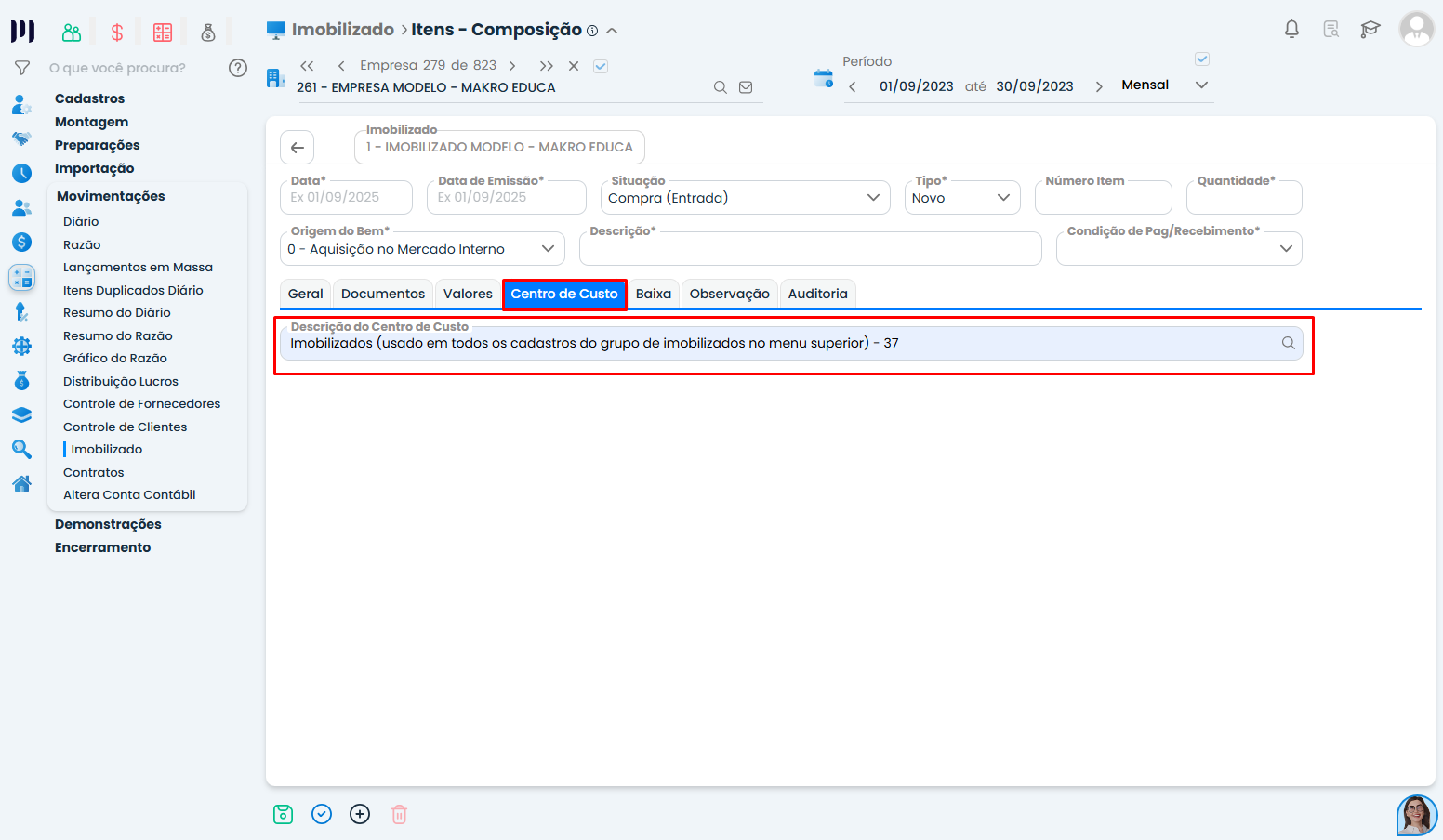Localização: Contábil > Movimentações > Imobilizado > Incluir novo registro