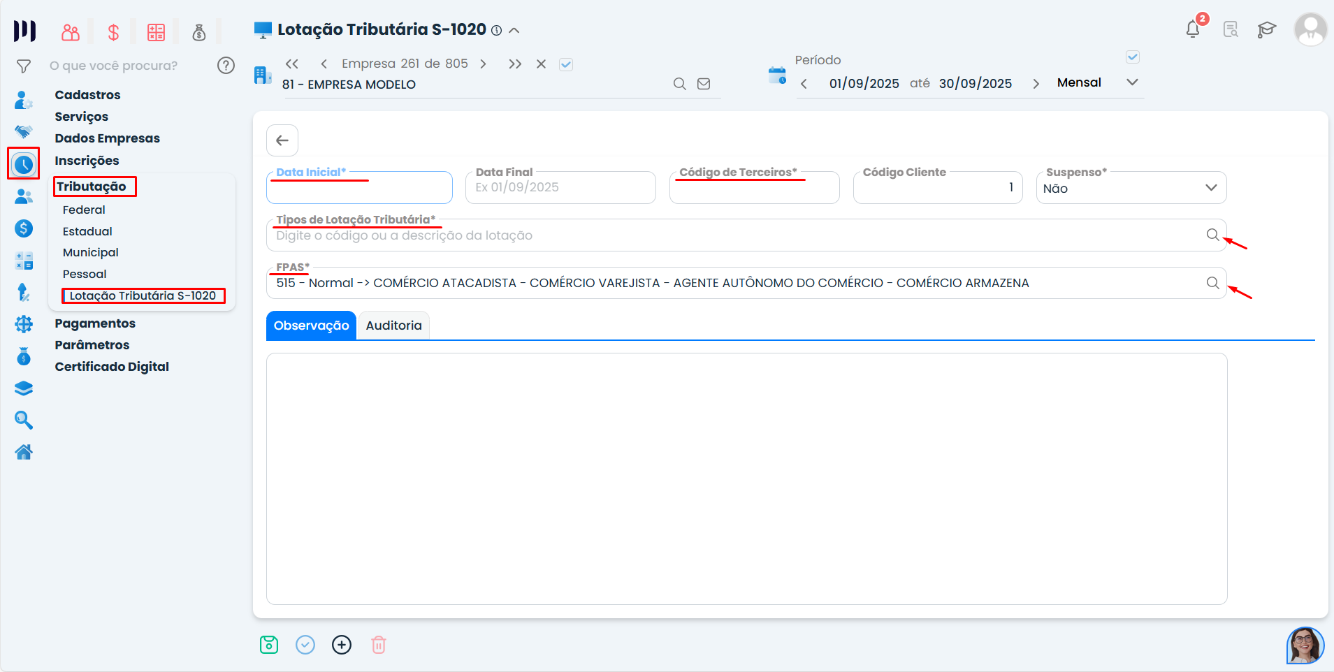 A lotação tributária é um código utilizado pela empresa para identificar o órgão ou setor ao qual pertence, ajudando o governo a fiscalizar e assegurar que os impostos sejam recolhidos corretamente, conforme a atividade da empresa. Esses dados são enviados ao eSocial, por meio do evento S-1020, para garantir a conformidade tributária. Vamos aprender a cadastrar corretamente a lotação tributária S-1020 no Sistema Makro.
