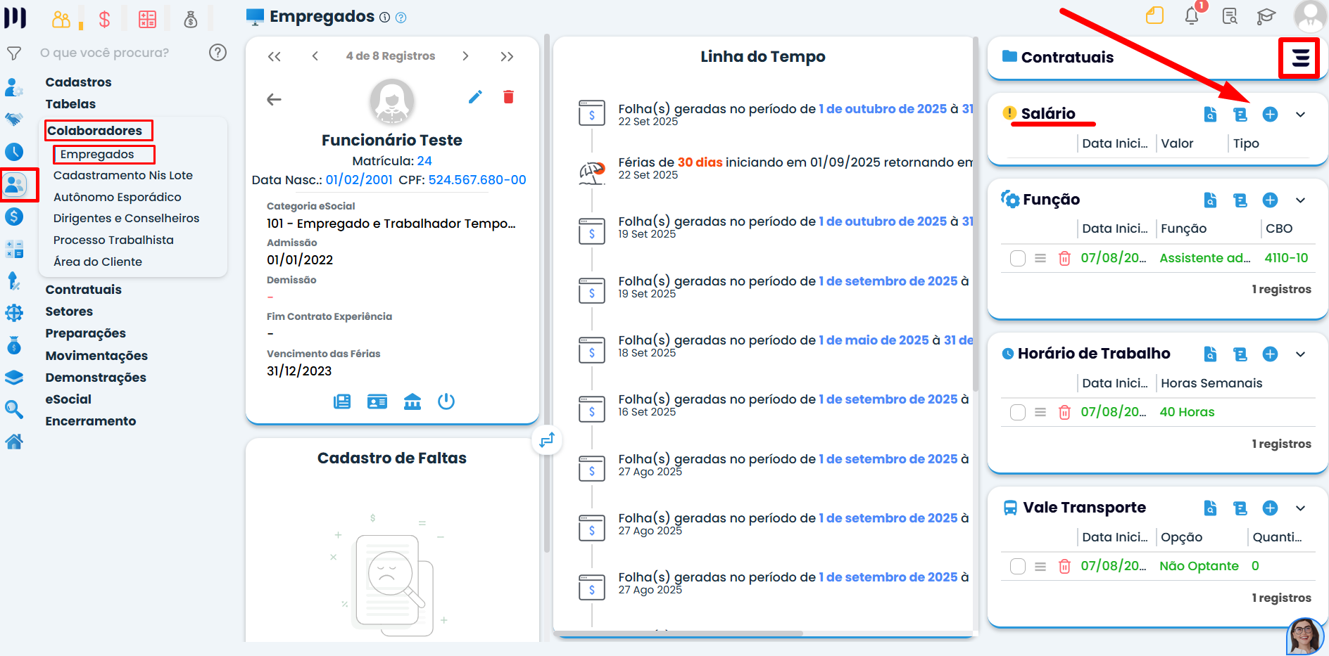 Passo 2: Clique no ícone “Incluir um novo registro” para adicionar o salário do novo colaborador;