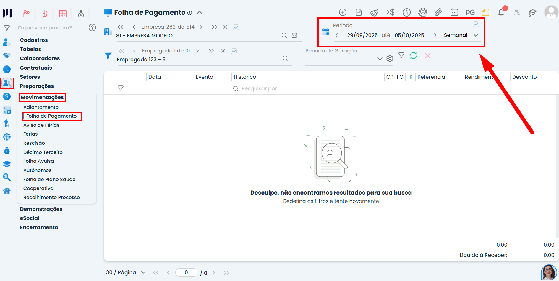 Antes de gerar a folha semanal, é importante que o empregado esteja cadastrado com o tipo de período correto. Veja como fazer: