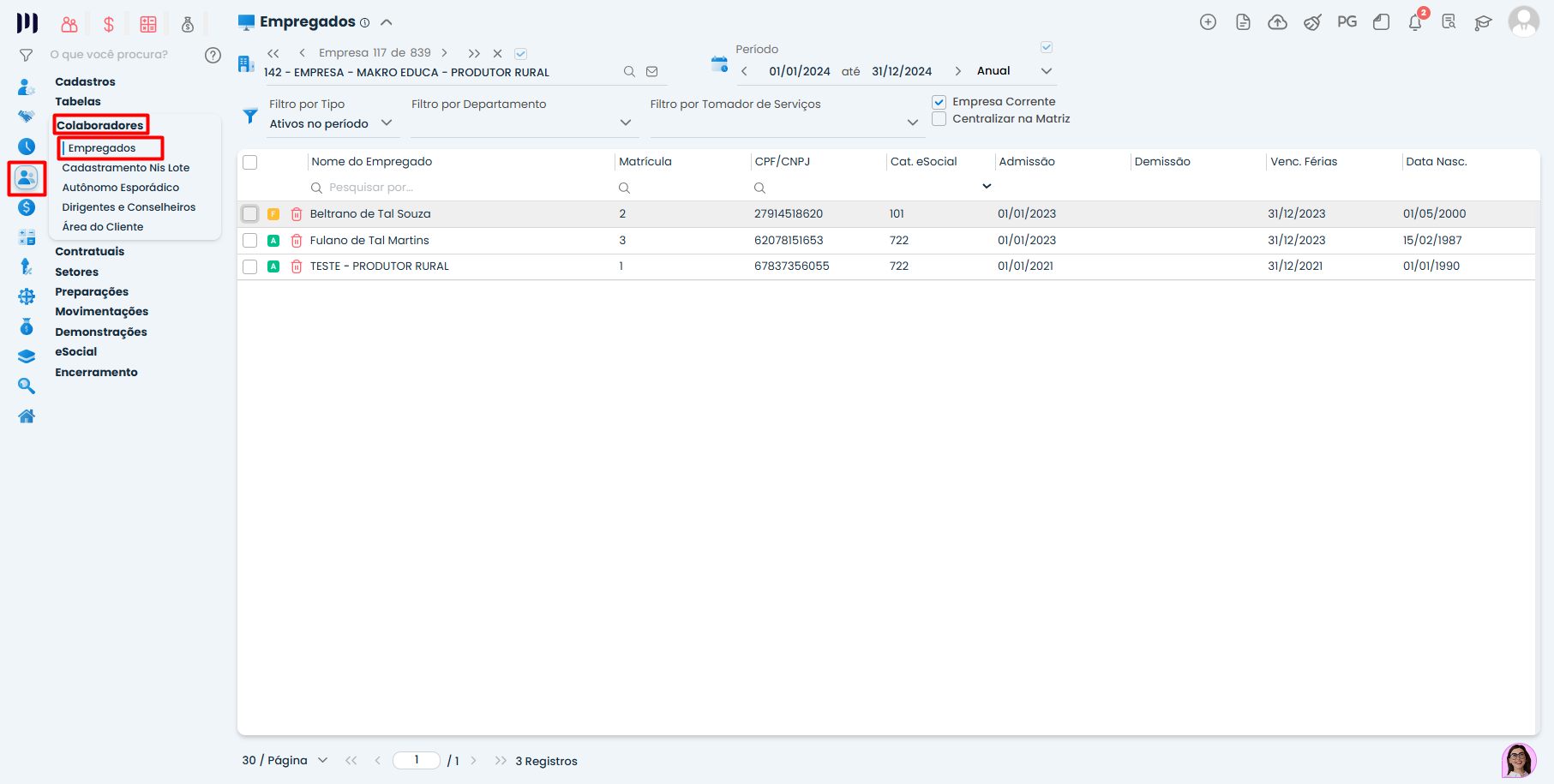 Acesse: Pessoal > Colaboradores > Empregados