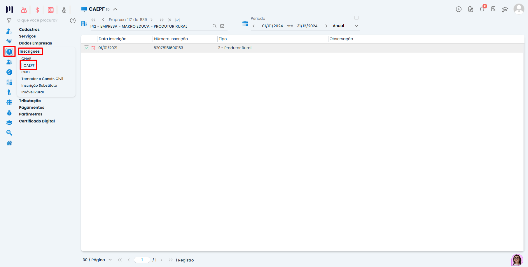 Terceiro Passo: Cadastro do CAEPF