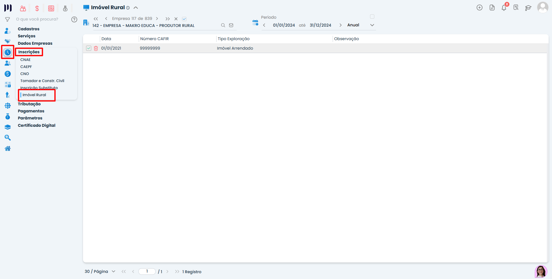 Acesse: Preparar > Inscrições > Imóvel Rural
