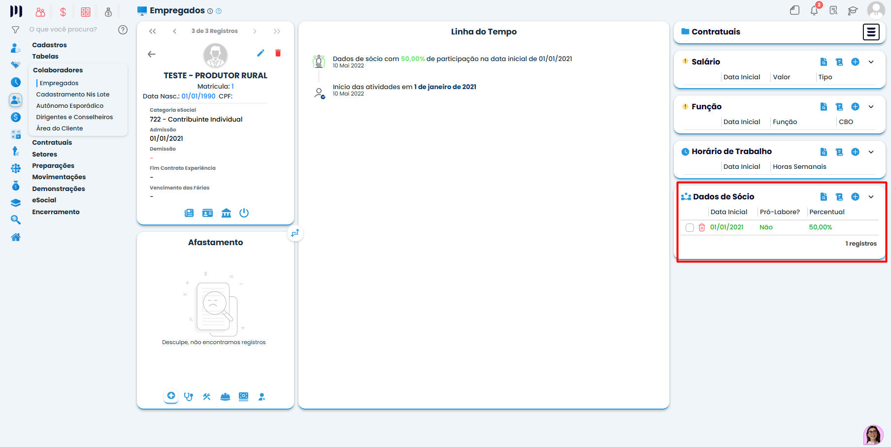 • Multiplique pelo percentual de quotas do sócio (encontrado em Pessoal > Colaboradores > Dados Sócios)