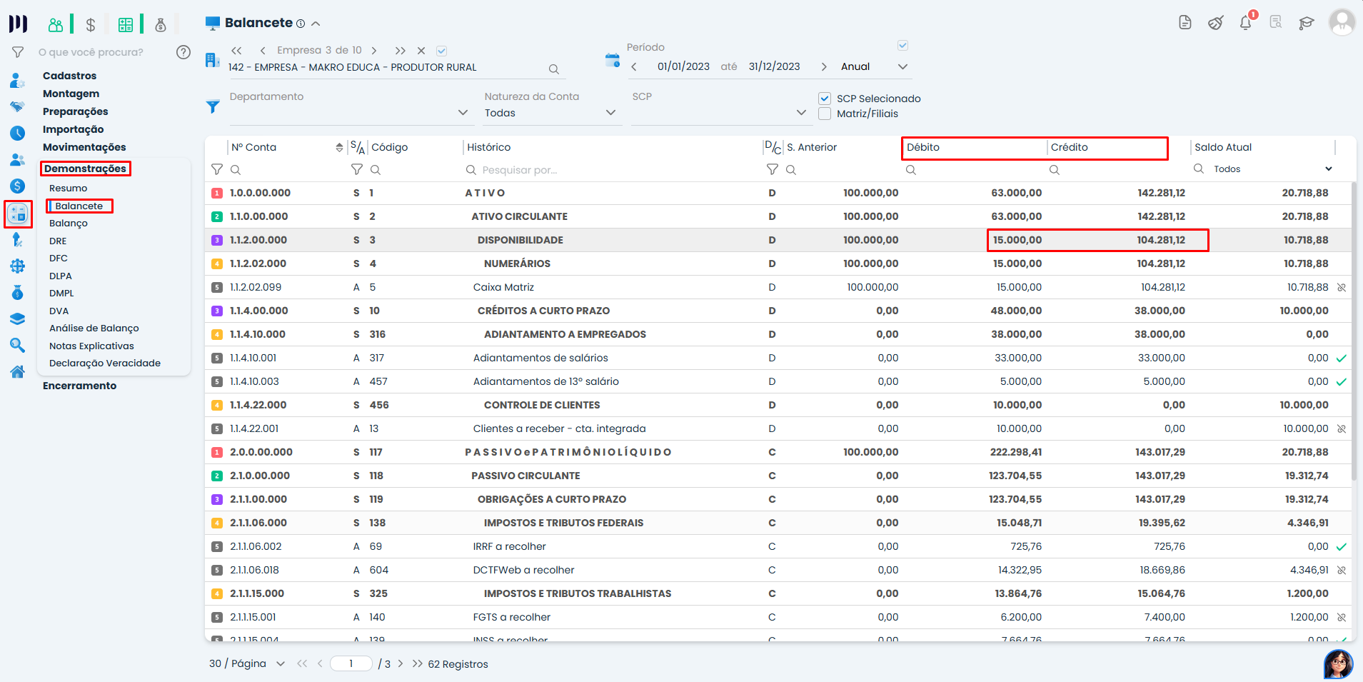 Segundo Método: Balancete com Grupos de Disponibilidade