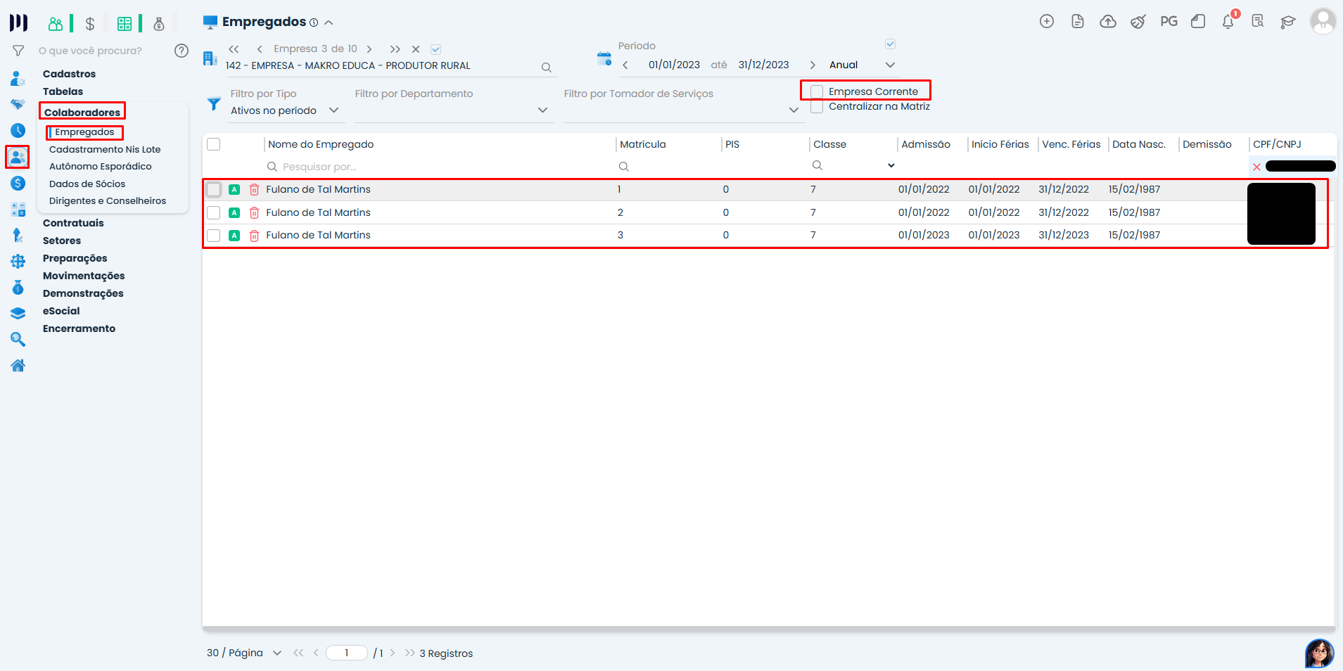 • Pesquise pelo CPF do sócio/Produtor Rural