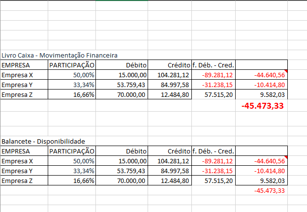 Sua conferência está completa! Em caso de divergências, verifique primeiro os percentuais societários e as contas marcadas como disponibilidades.