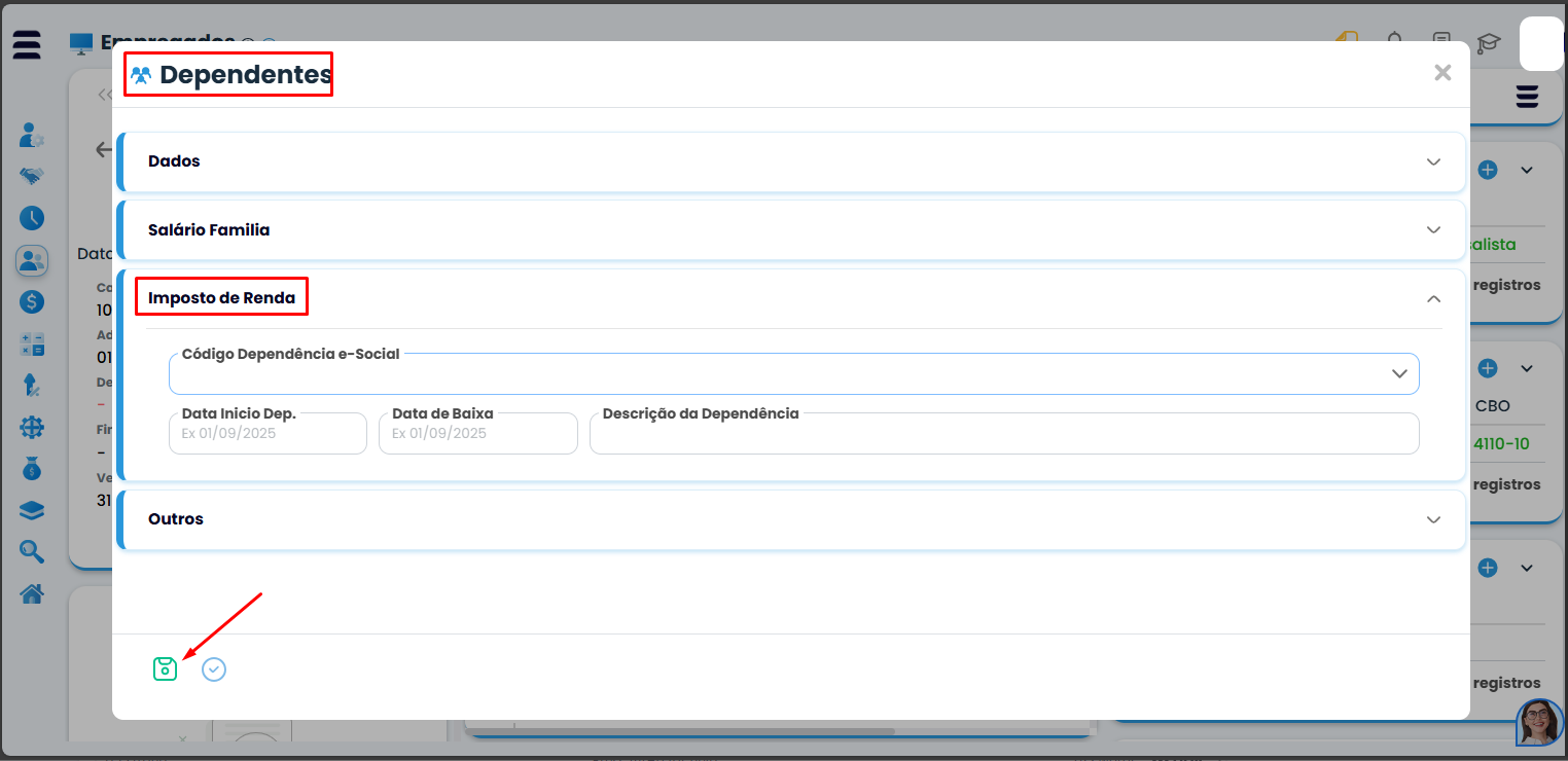 Passo 6: Na aba ‘Imposto de renda’, preencha todas as informações solicitadas, depois clique em “Salvar”.