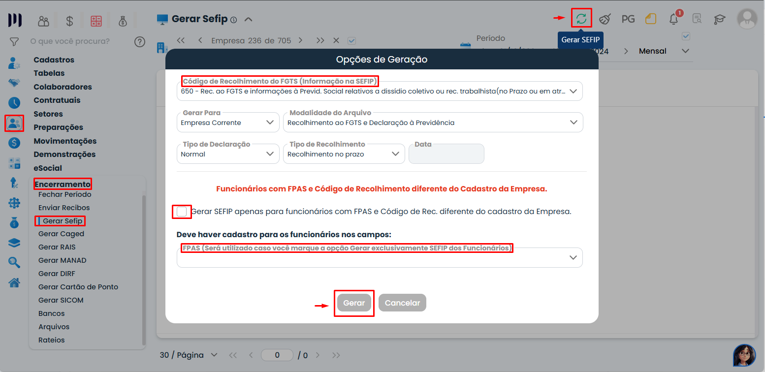 Clique em Gerar SEFIP