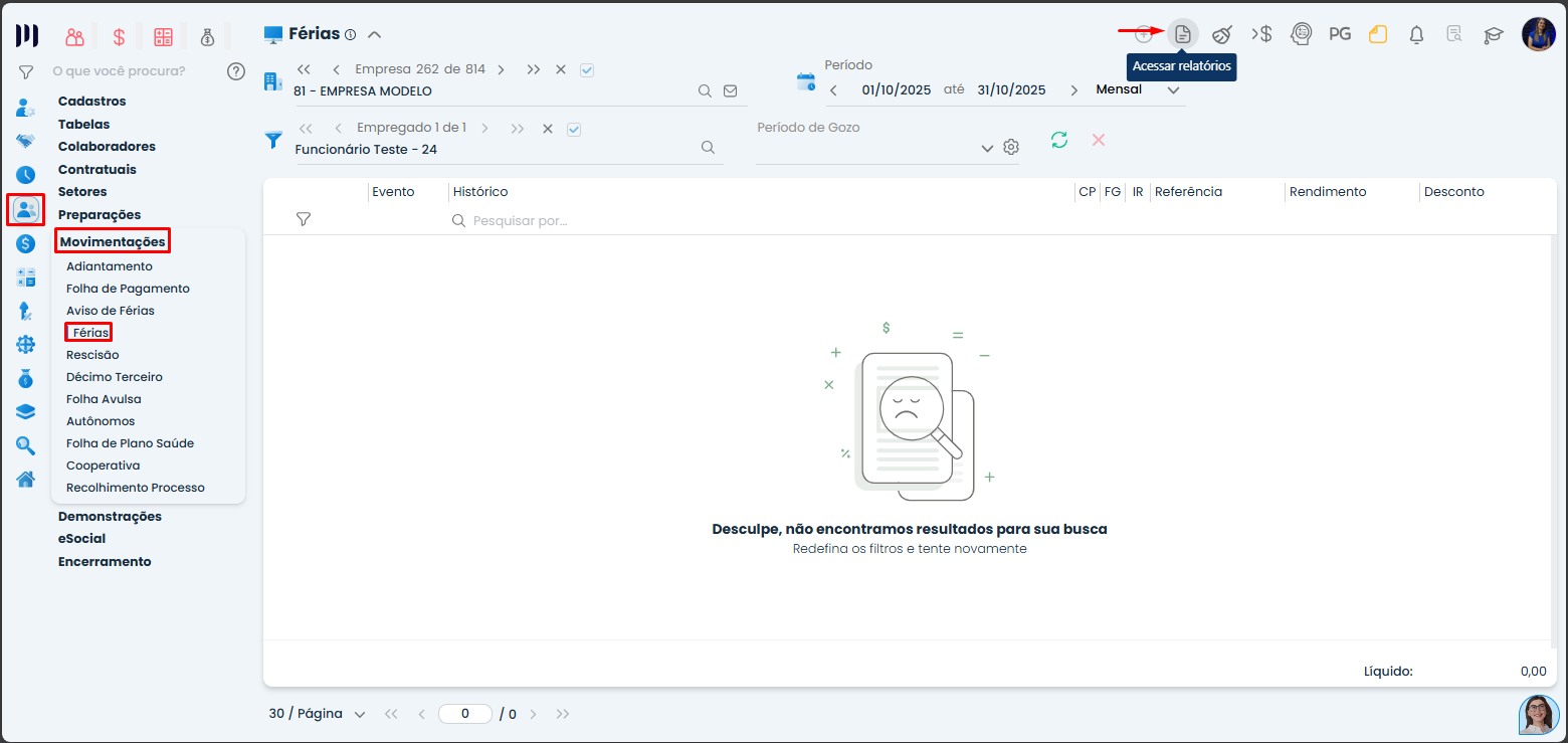 Esse relatório mostra datas previstas de gozo de férias com base no período aquisitivo de cada colaborador.