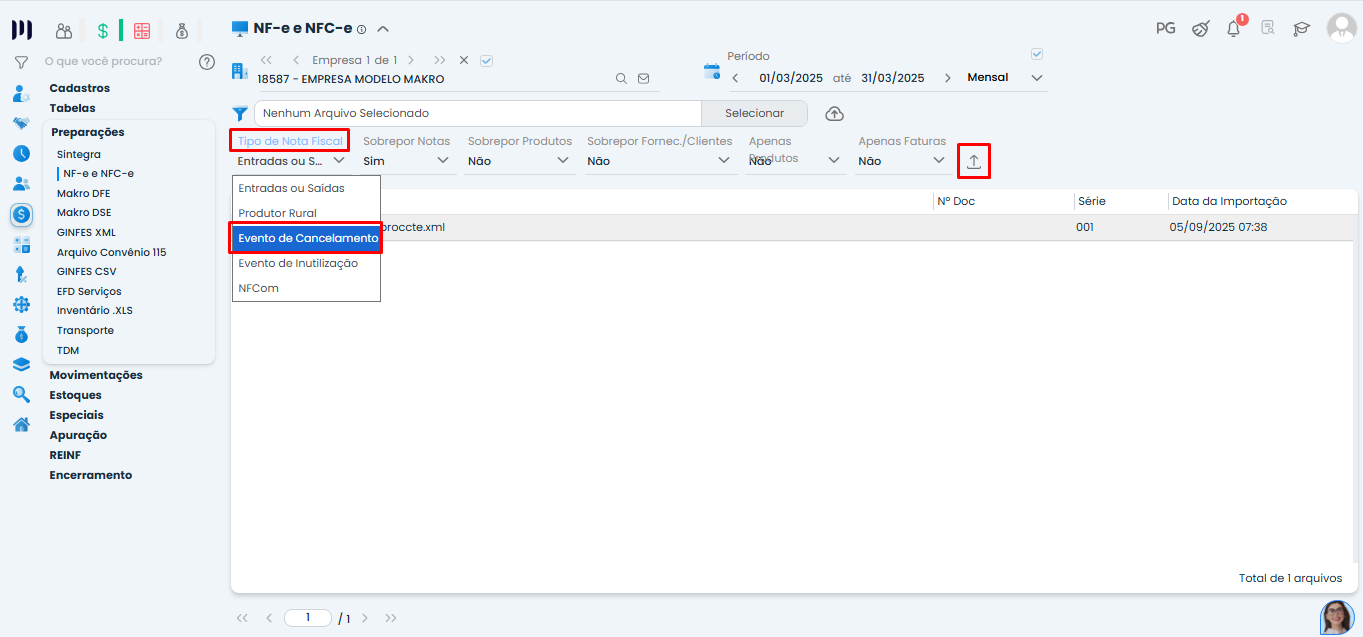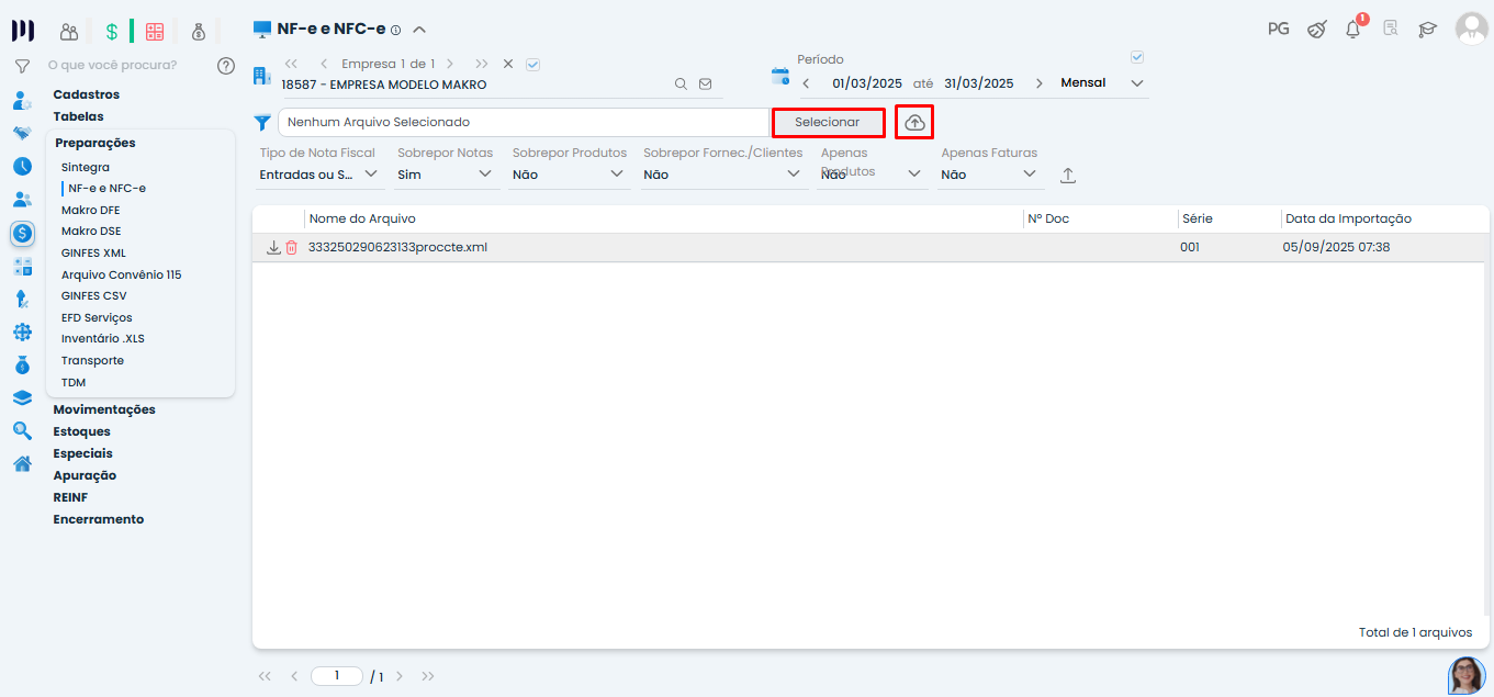 Caso necessário, use o campo “Selecionar” para carregar o documento