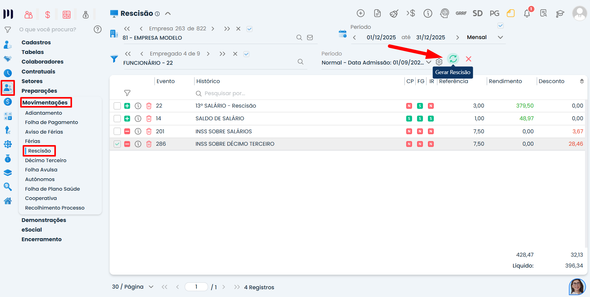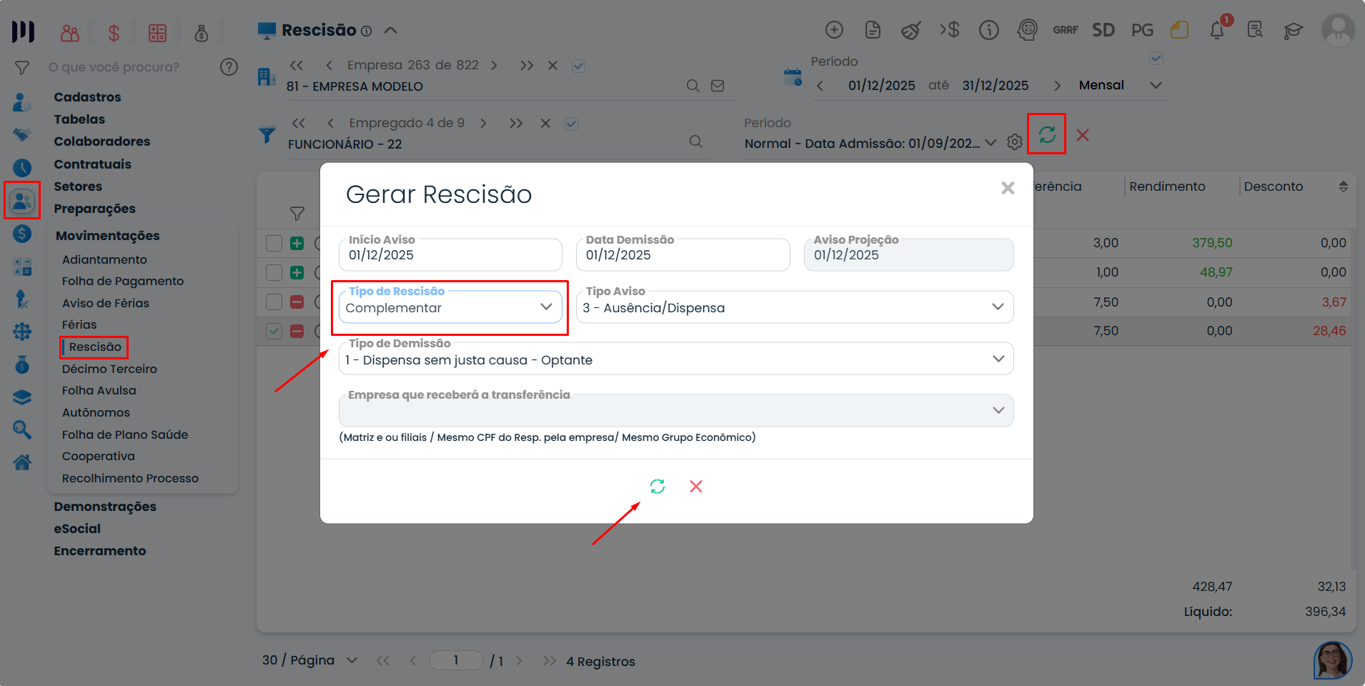 Passo 2: Gere a rescisão complementar;