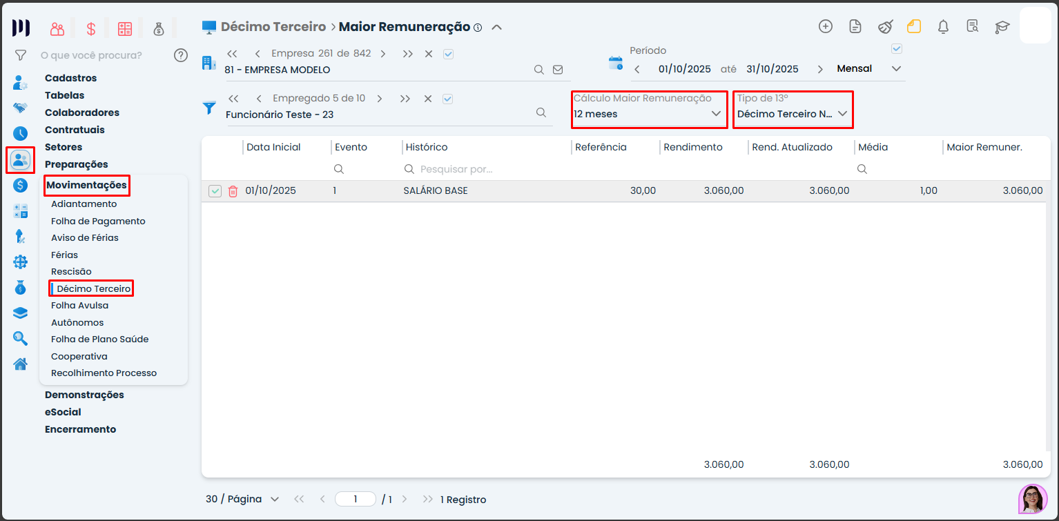 Essa verificação é útil antes de gerar a folha do 13º salário, especialmente para conferir se as médias de variáveis como horas extras, comissões ou adicionais estão sendo consideradas corretamente para cada colaborador.