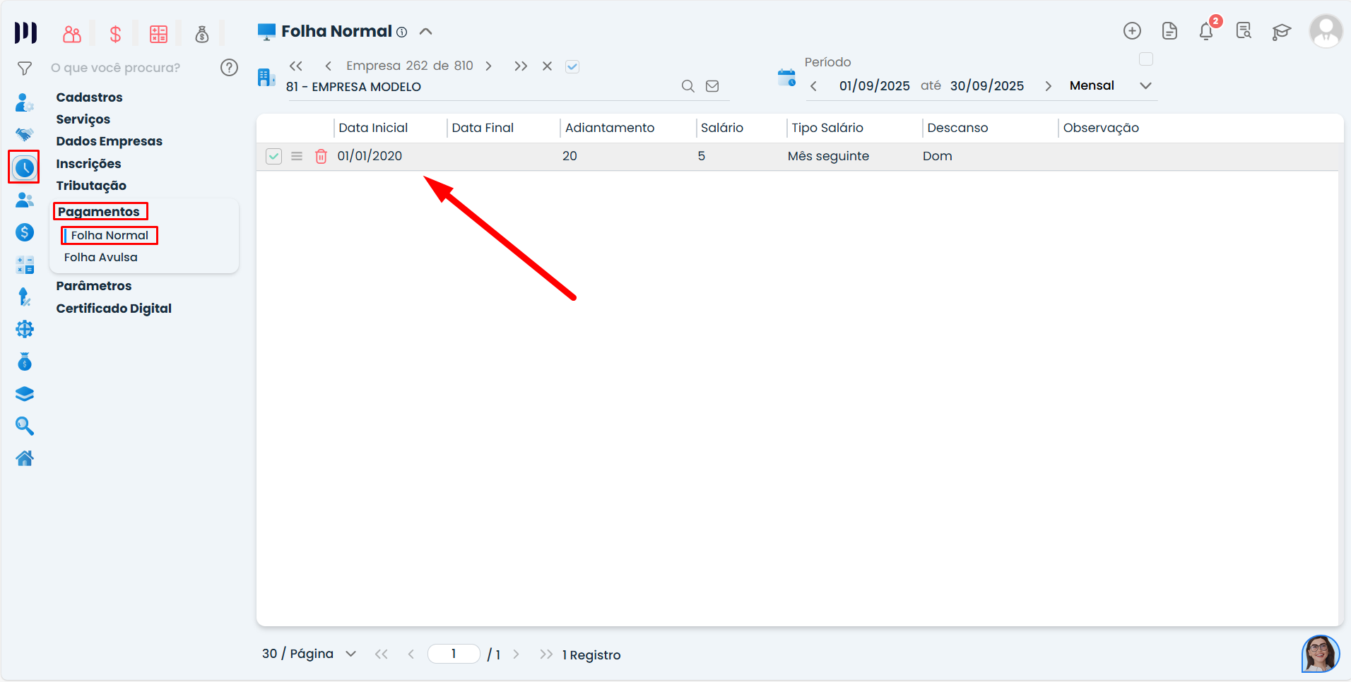 Passo 1: Acesse o menu Preparar>Pagamentos> Folha Normal;