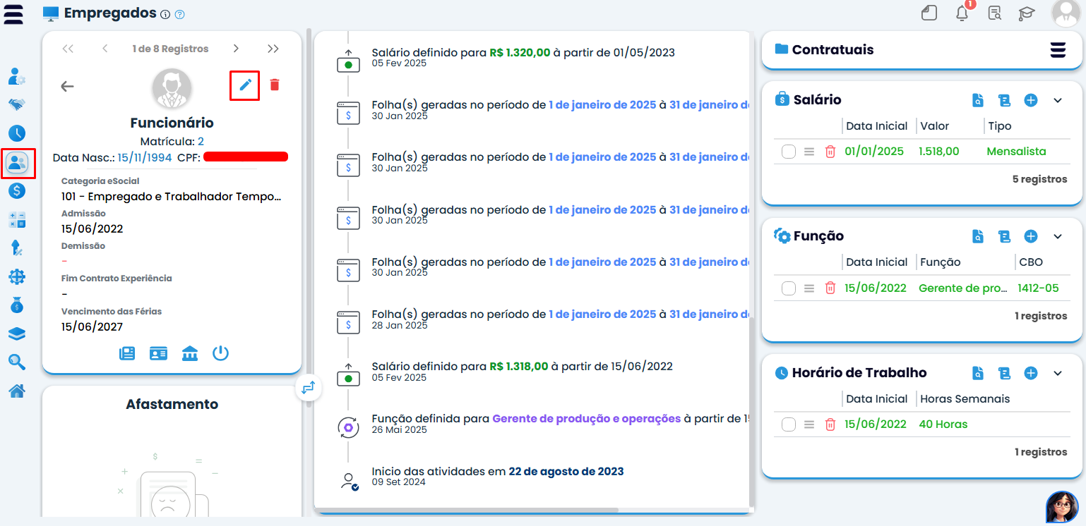 Passo 1: Acesse o menu Pessoal>Colaboradores>Empregados;