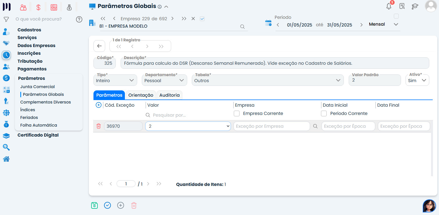 O cálculo incorreto do Descanso Semanal Remunerado (DSR) pode ocorrer por configurações divergentes entre sindicato, parâmetros globais (para as empresas do escritório) ou divisores de exceção. Vamos resolver isso juntos! Abaixo, apresentamos três formas de correção, conforme o cenário da sua empresa: