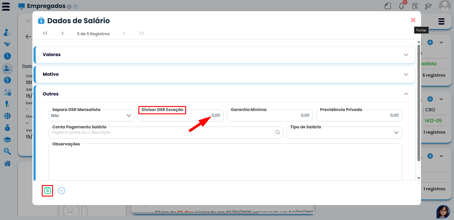 Passo 2: Na aba Outros, localize o campo chamado Divisor DSR Exceção;