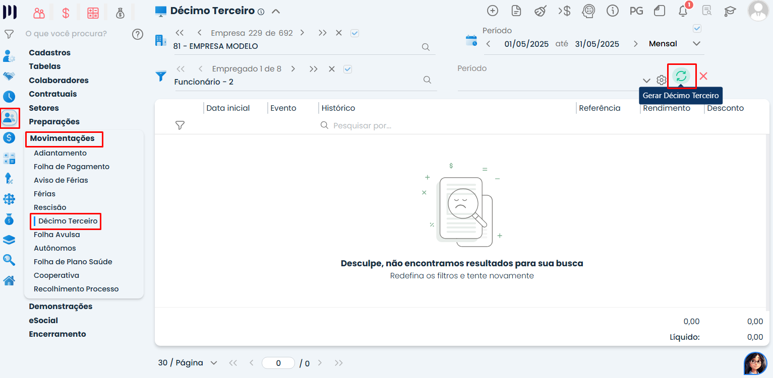 Passo 4: Gere novamente o cálculo do adiantamento do 13º salário para que o sistema utilize a nova configuração.