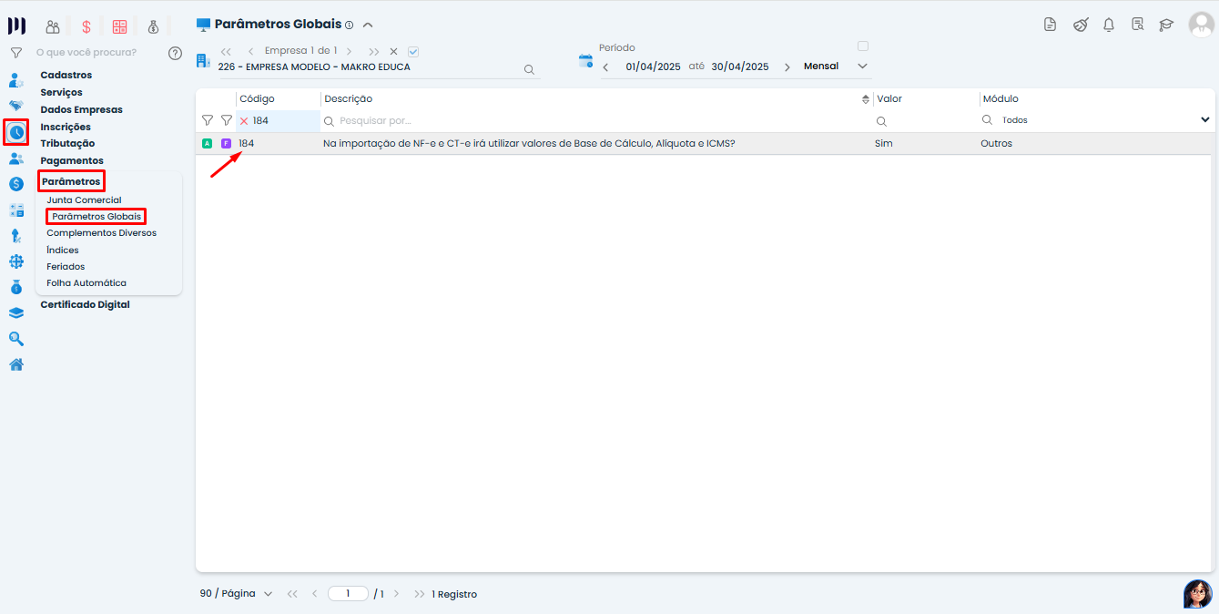 No menu principal, clique em Preparar > Parâmetros > Parâmetros globais.