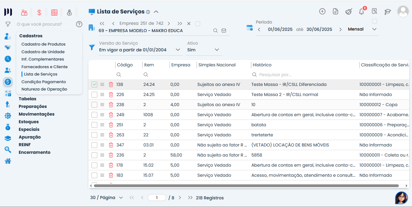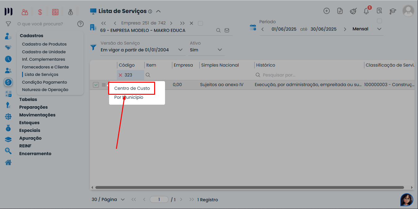 - Vá em: Fiscal > Cadastros > Lista de Serviços