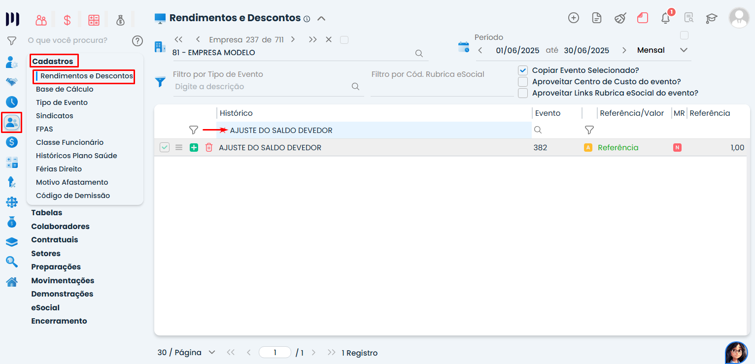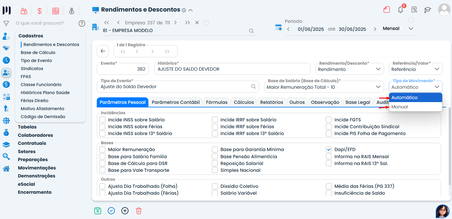 Dica: Sempre que for necessário revisar a folha, comece verificando se os eventos e parâmetros estão corretamente configurados.