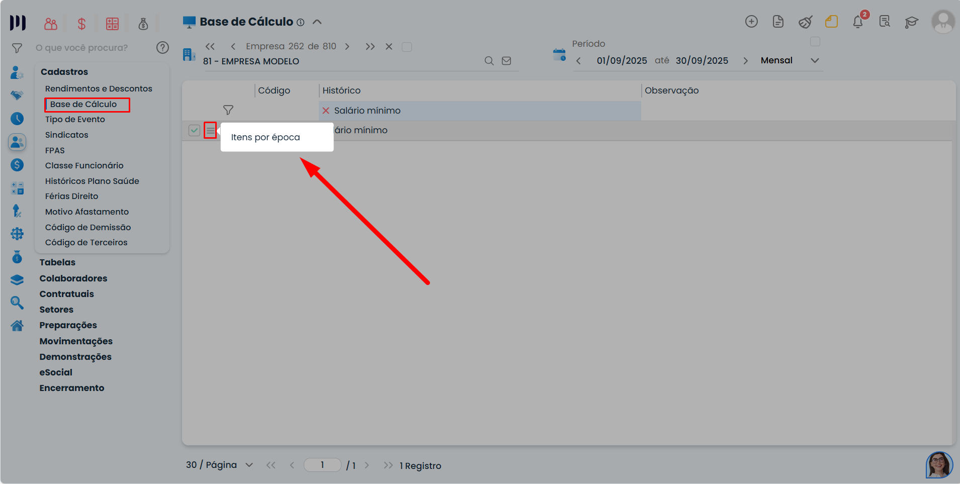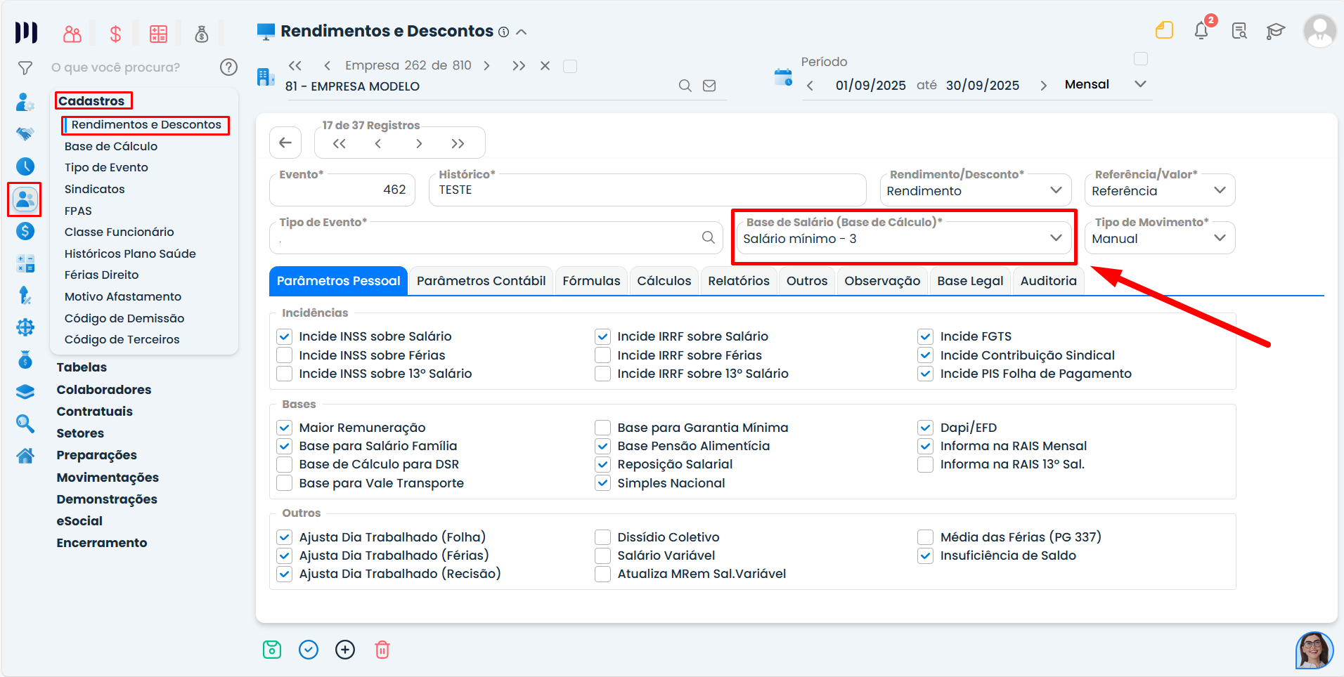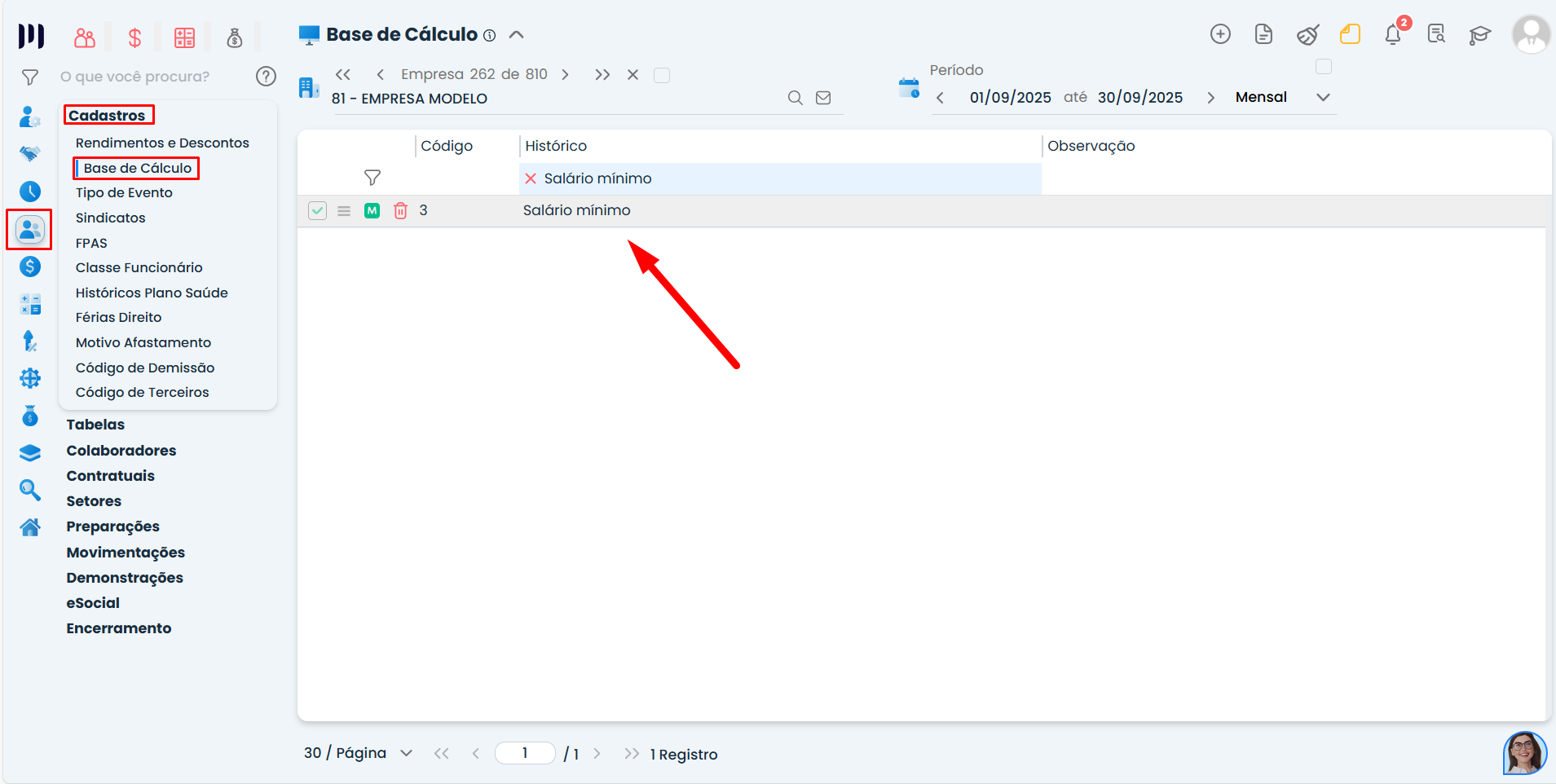 • Lembre-se de conferir sempre se o valor do salário mínimo está atualizado no sistema antes de utilizar essa base de cálculo.