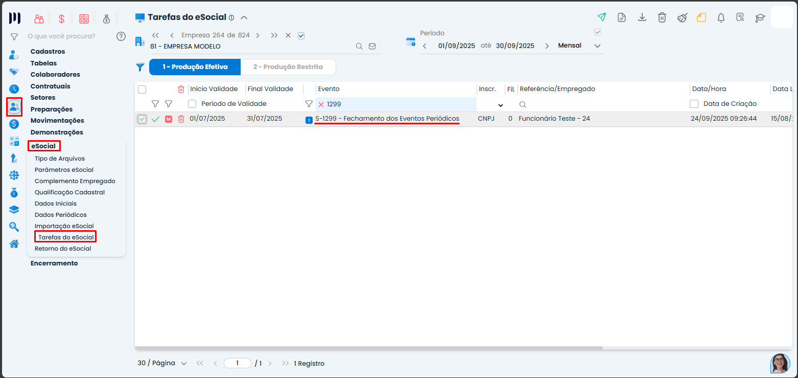 Após o envio do S-1298, será possível ajustar informações e reenviar eventos necessários antes de fechar novamente com um novo S-1299.