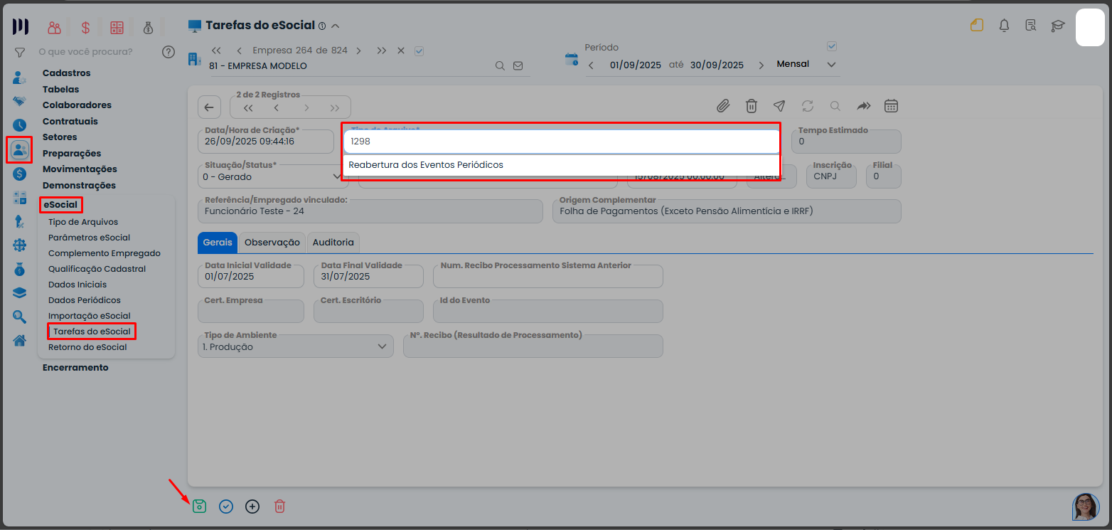 Passo 6: Faça o envio do evento S-1298 para reabrir o fechamento do mês no eSocial;